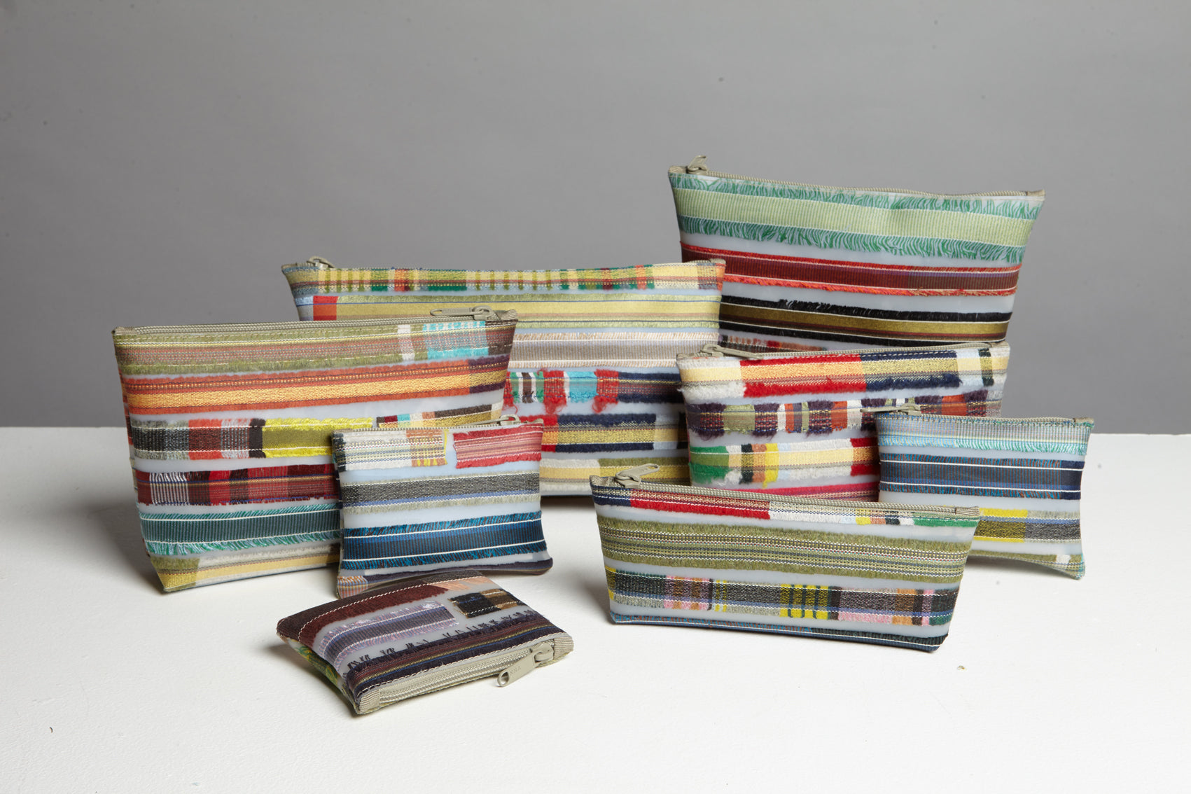 The Riedizioni collection by Luisa Cevese is made out of a unique material that combines textile remnants with polyurethane. Wallace Sewell are always excited to collaborate with Luisa, as her designs recycle the woven selvedges from our scarves and throws, to create these beautiful accessories.