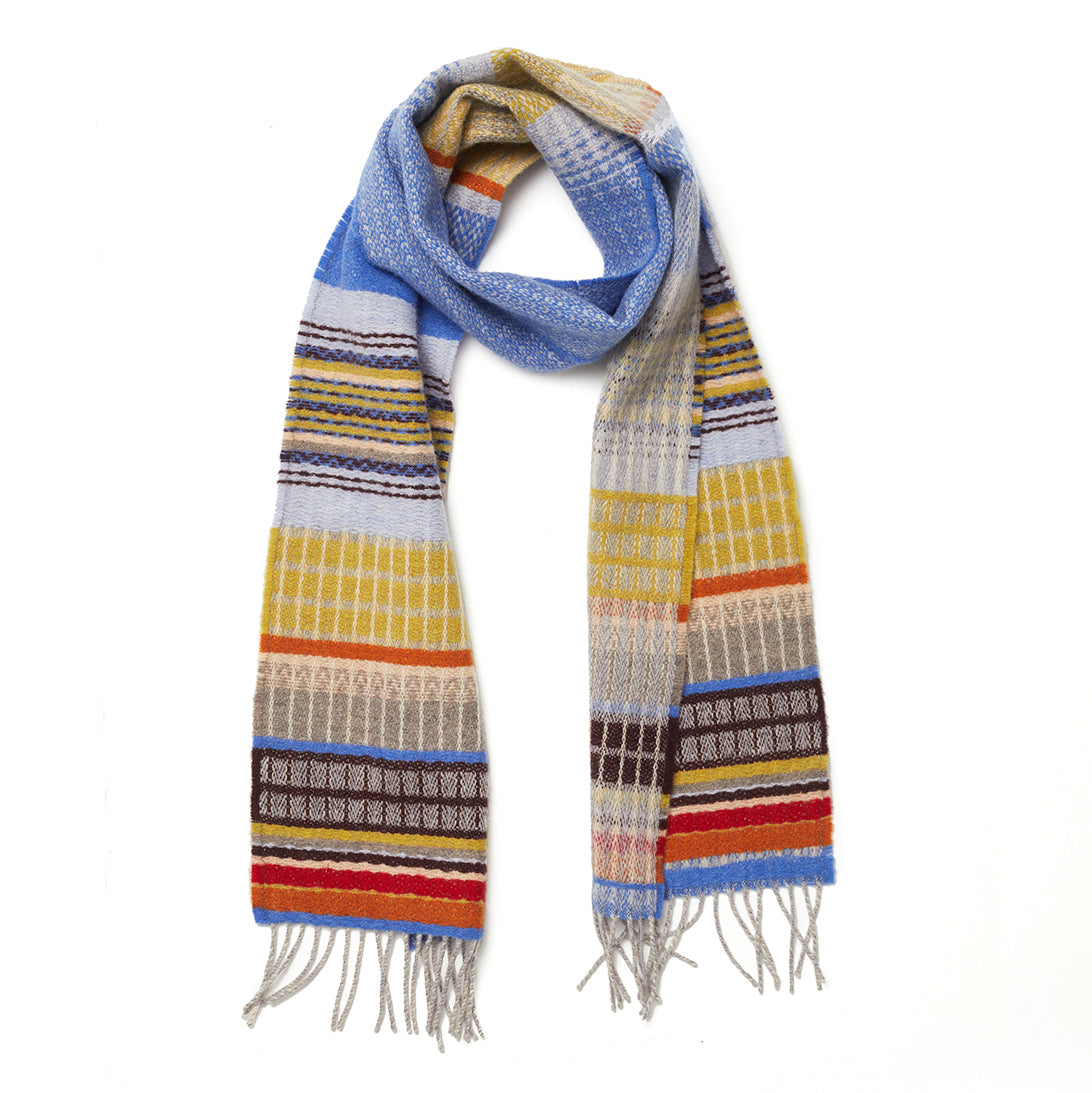For Emily Carr's first UK exhibition in 2014, Wallace Sewell designed a scarf inspired by her luminous sky paintings, sunlit beach scenes, and striking landscapes.