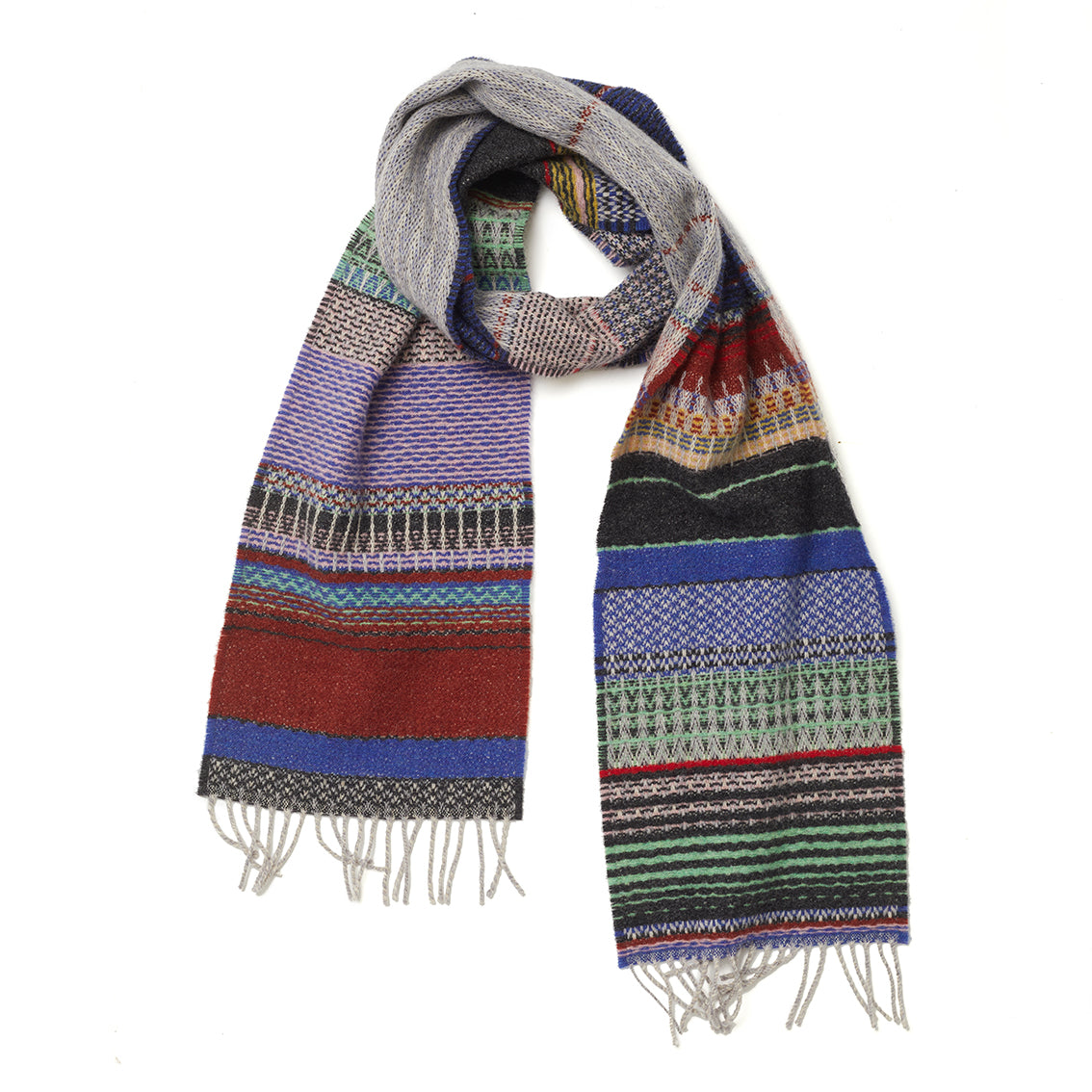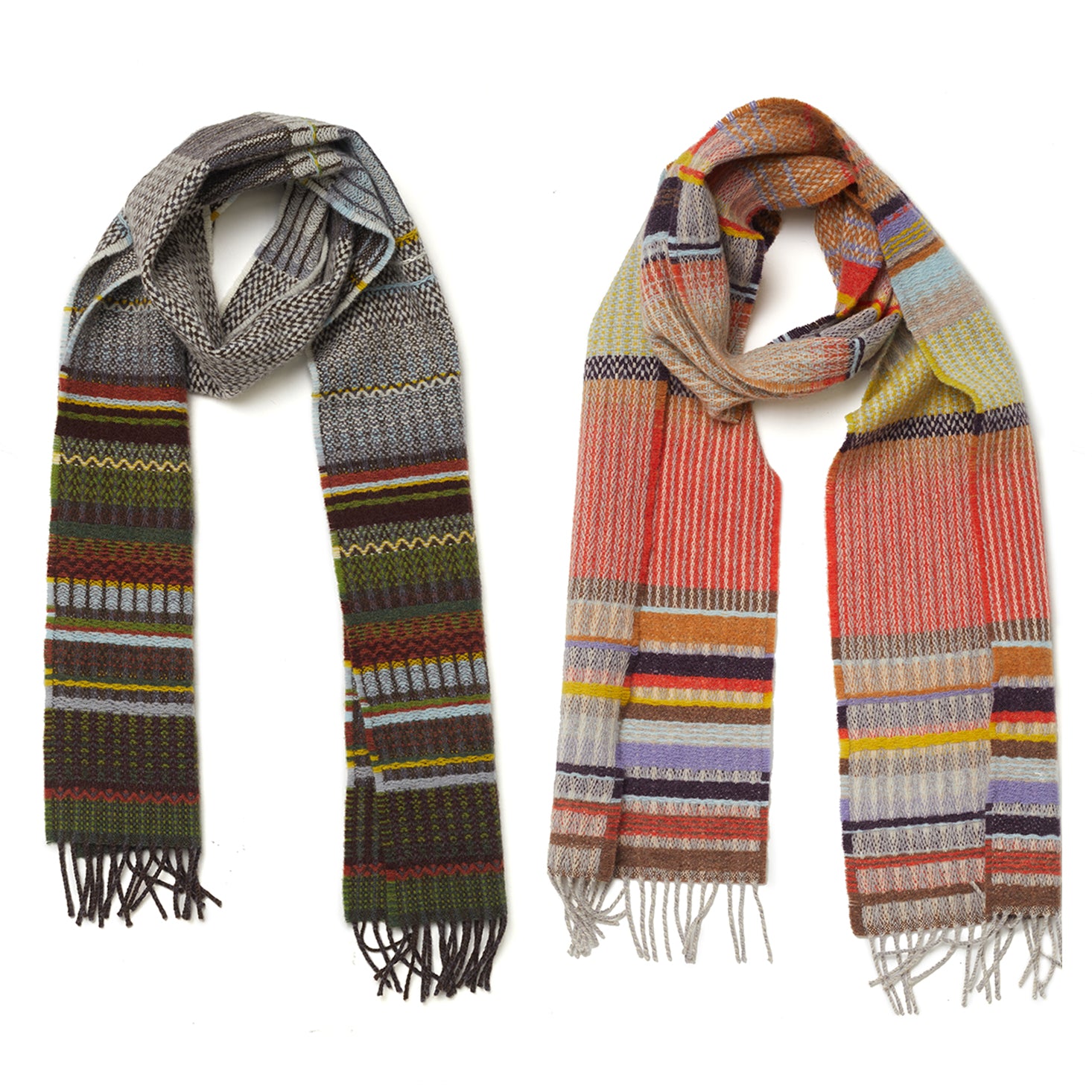 Rothko’s mesmerising, soft-edged rectangles of heavily saturated colour inspired the palette and block design for this range of scarves. Emma and Harriet explored his use of colour in 'Light Red Over Black’ (1957), to blend deep reds, orange, maroon, brown and black for two saturated and striking merino wool scarves.