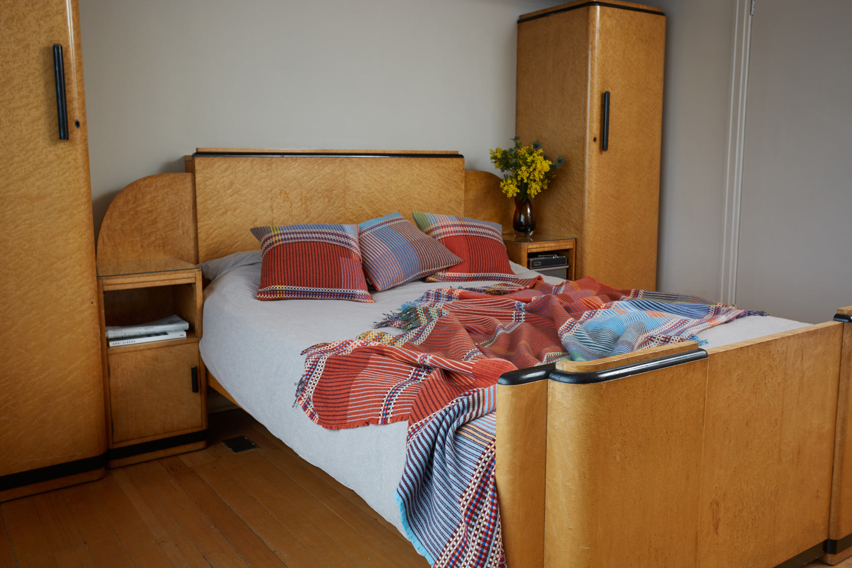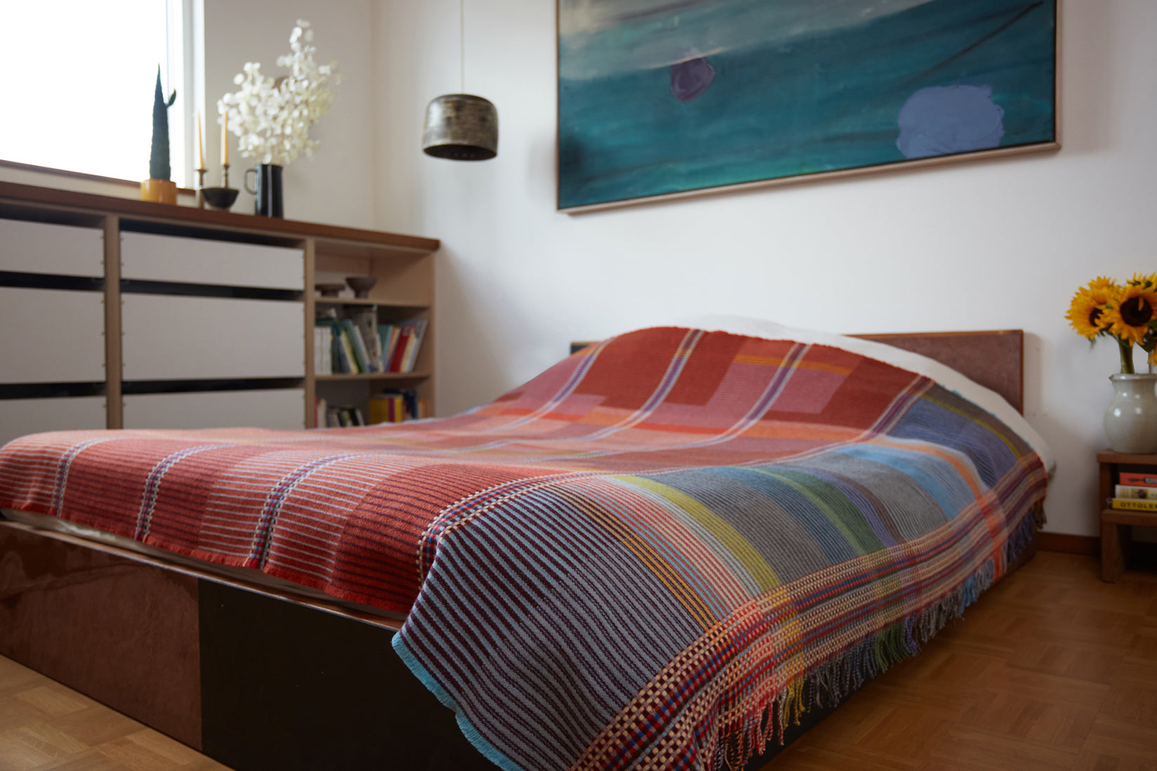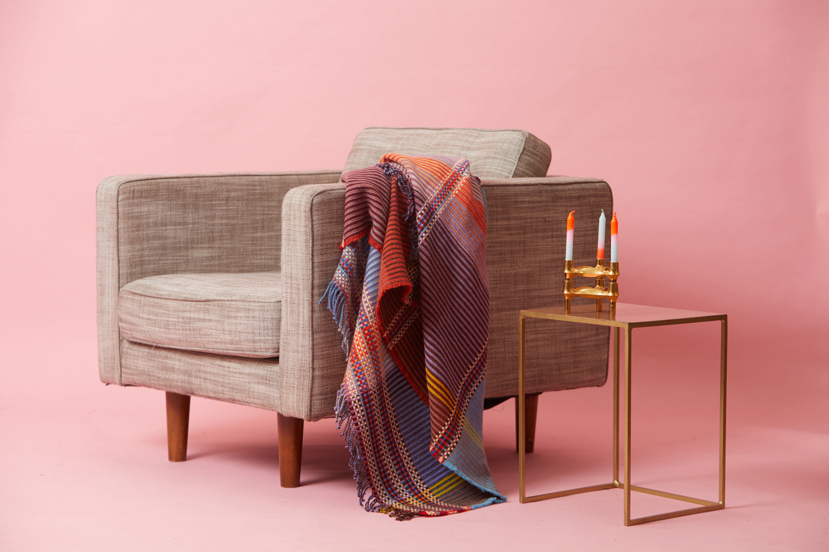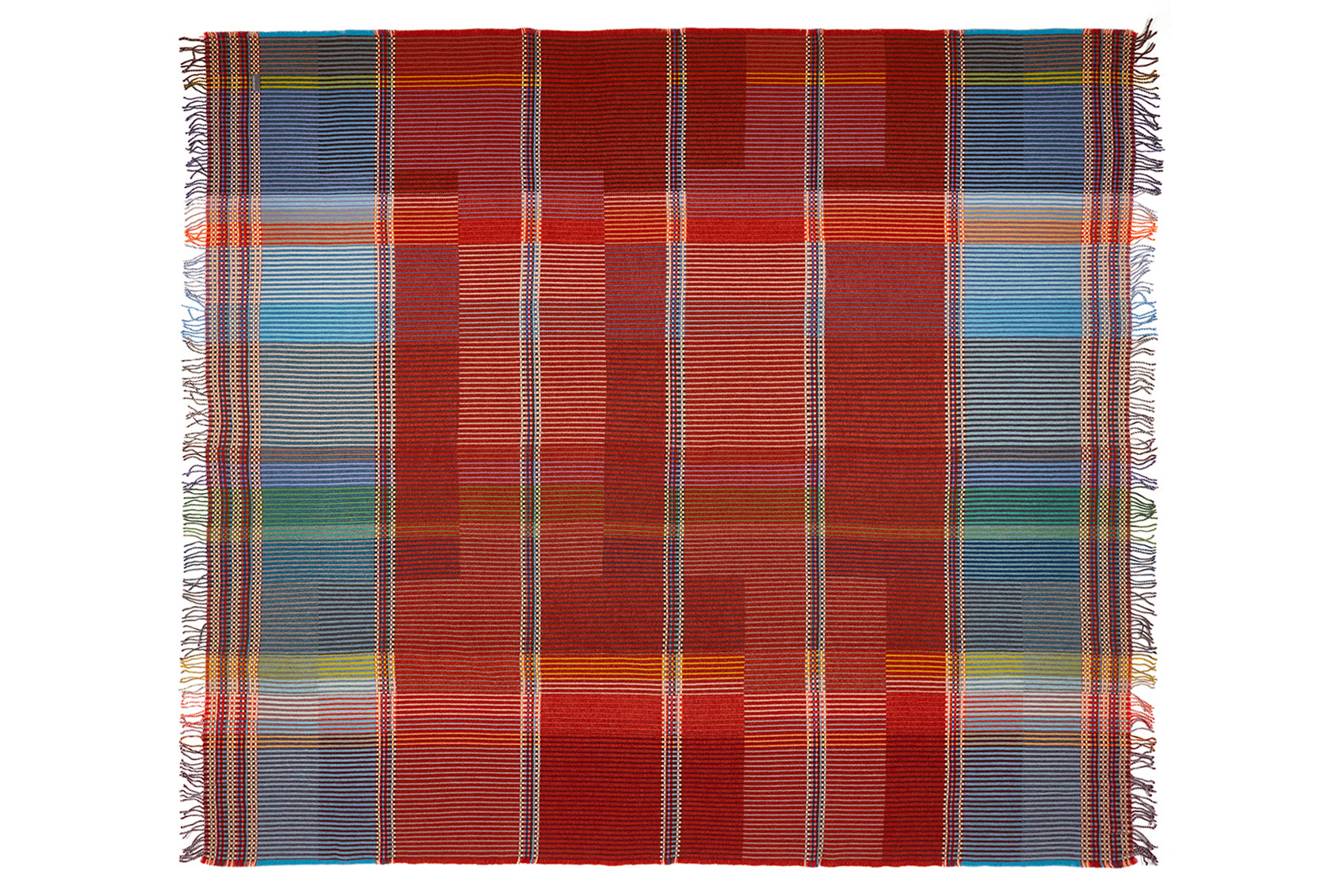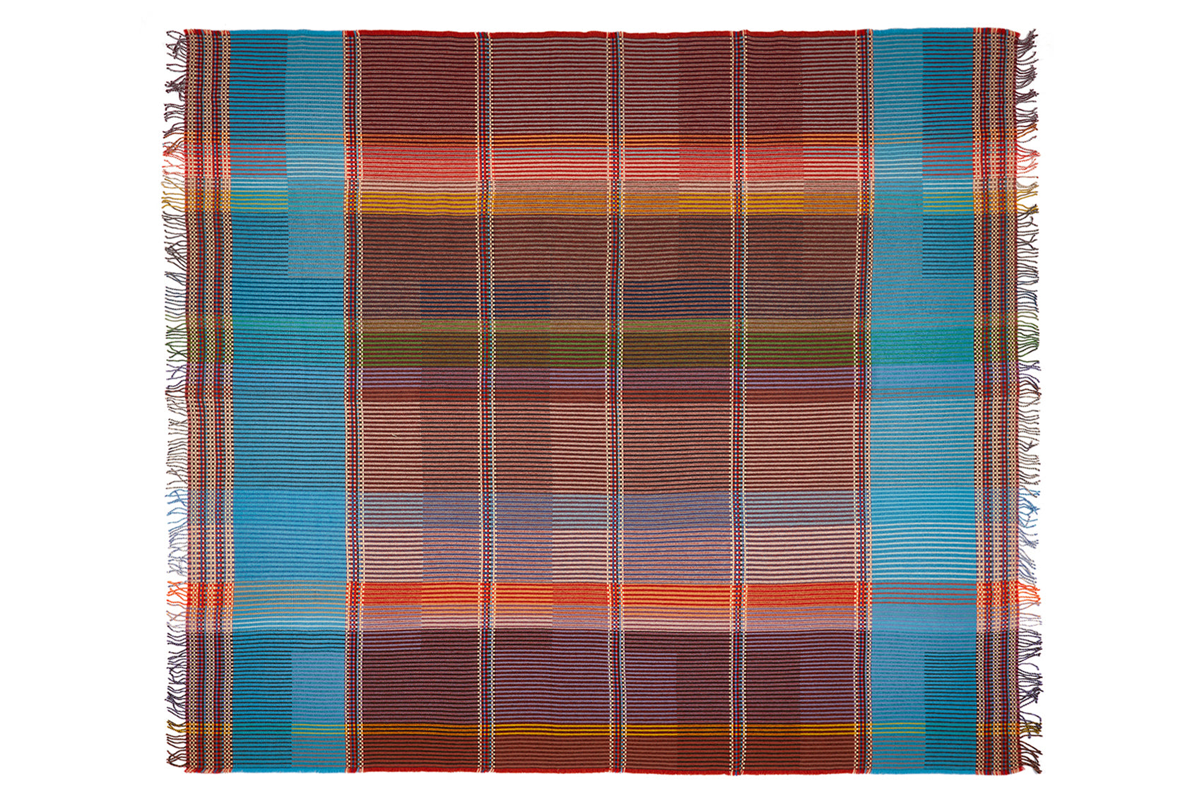 Woven in merino lambswool, our Pinstripe throws combine bold coloured blocks with fine, detailed vertical stripes. This double-sided design also has a contrasting pixelated border and makes a stunning addition to a room.