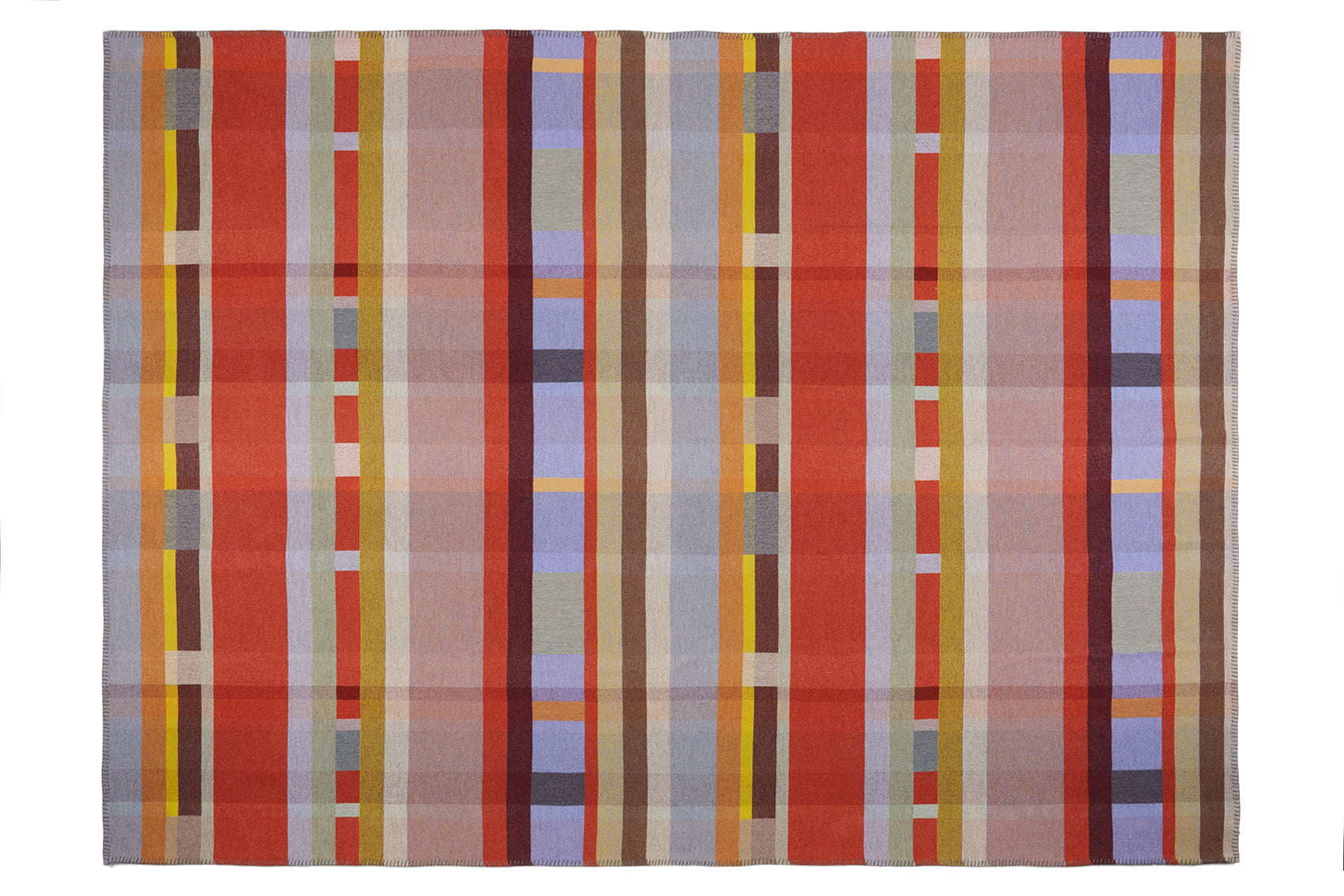 Woven with sumptuous merino lambswool and felted to create a super soft, inviting quality. Beautifully finished with blanket stitches, which adds an extra tactile detail to all its edges. This bold and contemporary design will be a colourful and uplifting addition to any home.