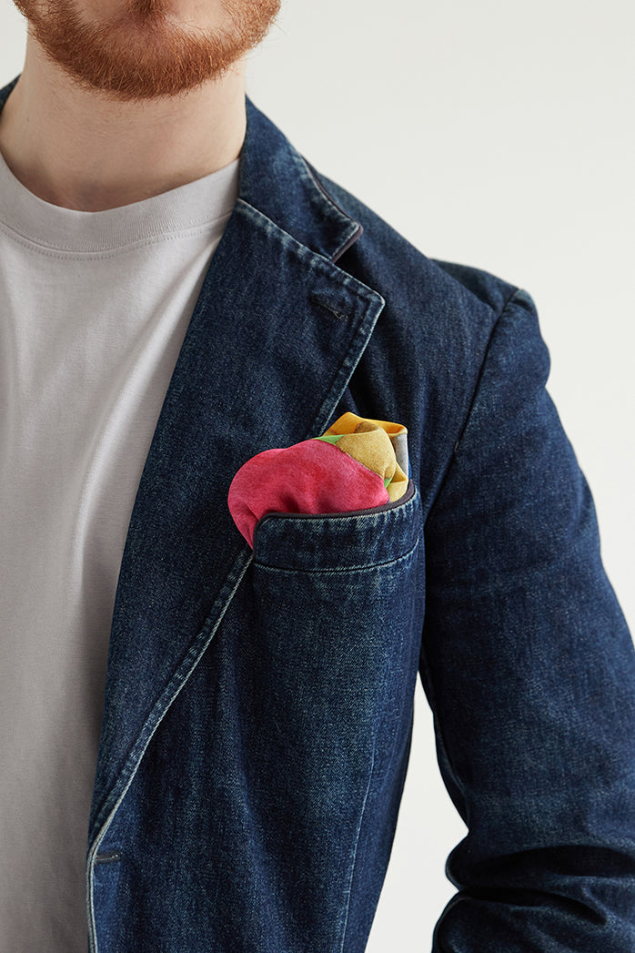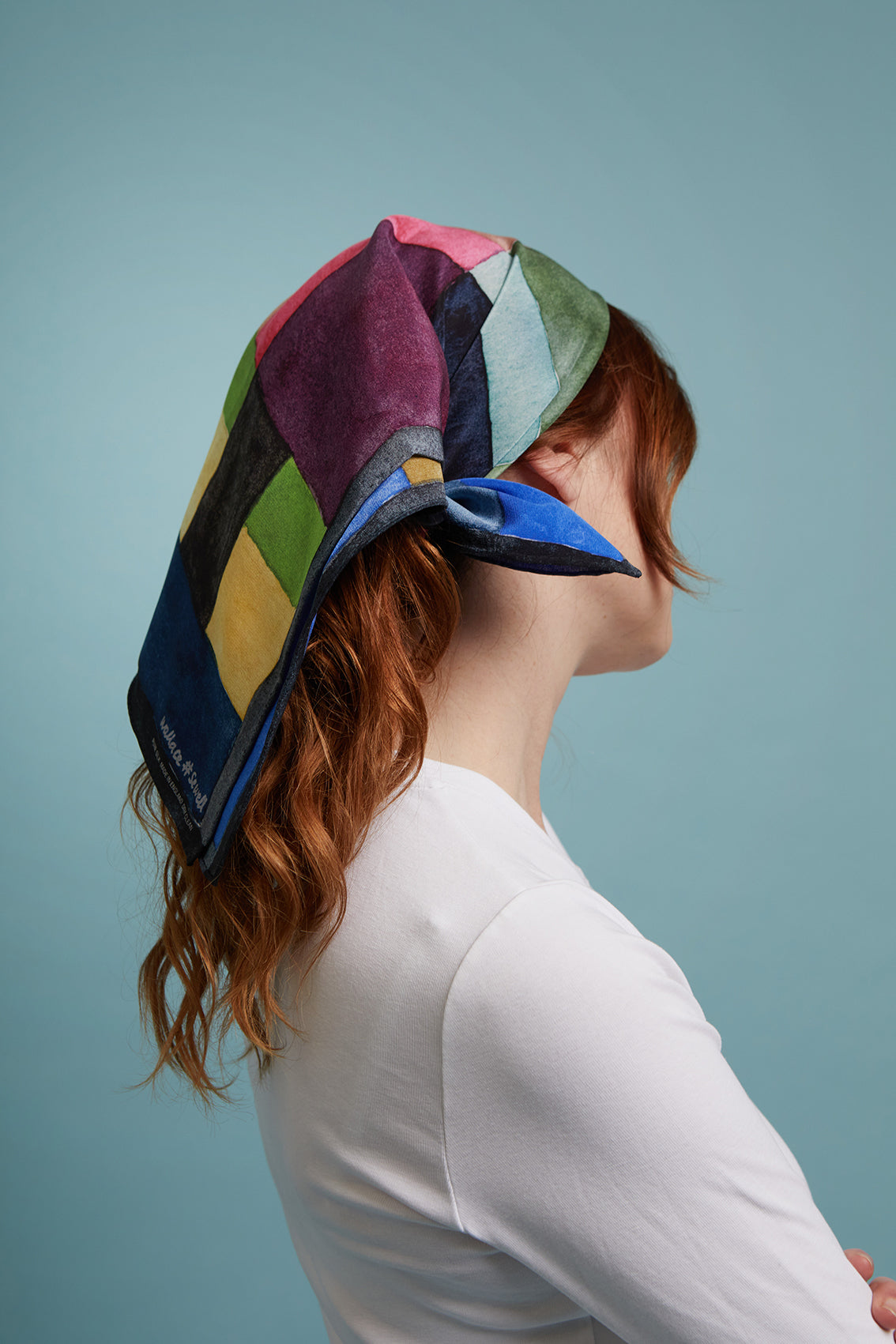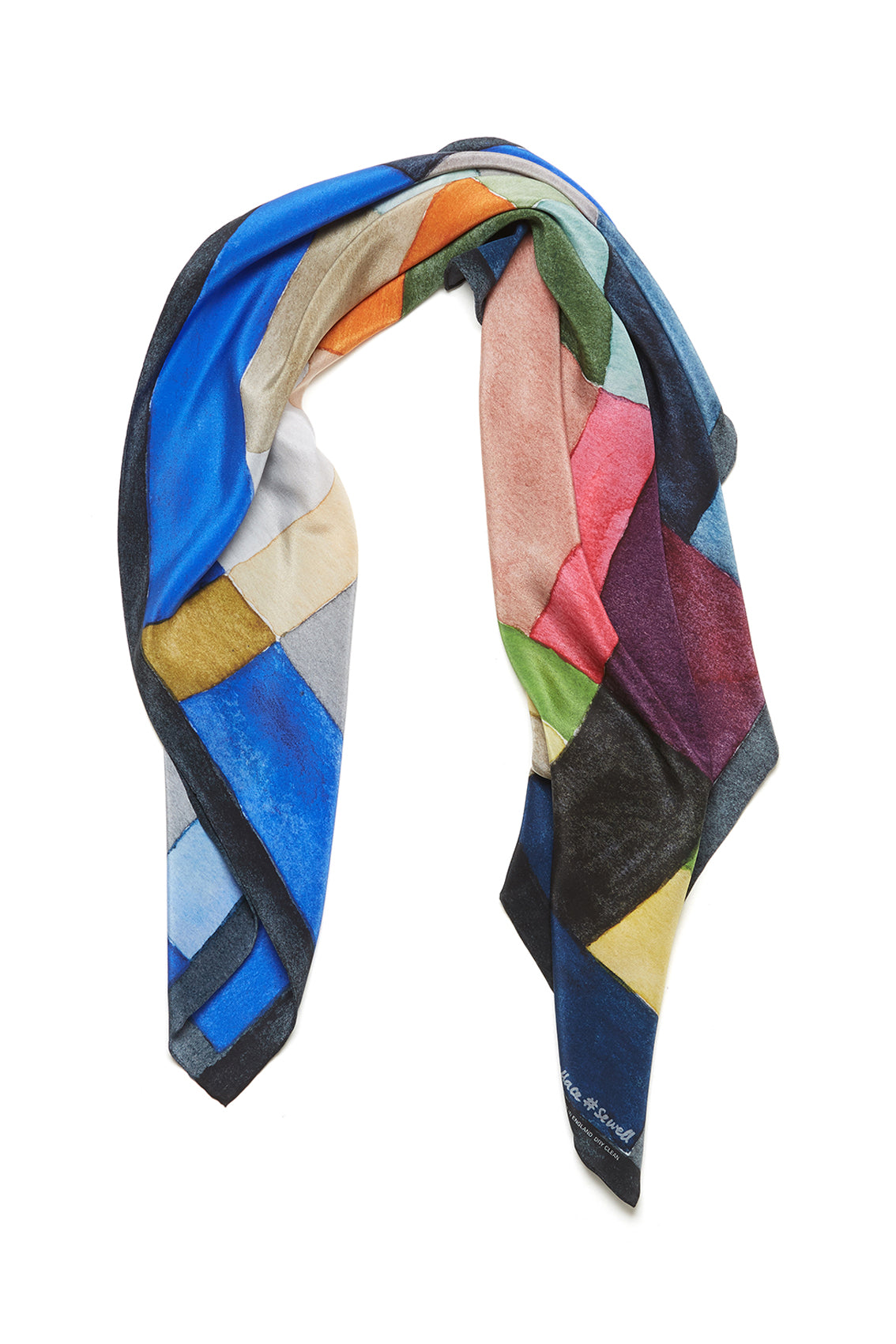Printed on lightweight silk crepe de chine, the scarves drape beautifully and come in various sizes, including a pocket square.