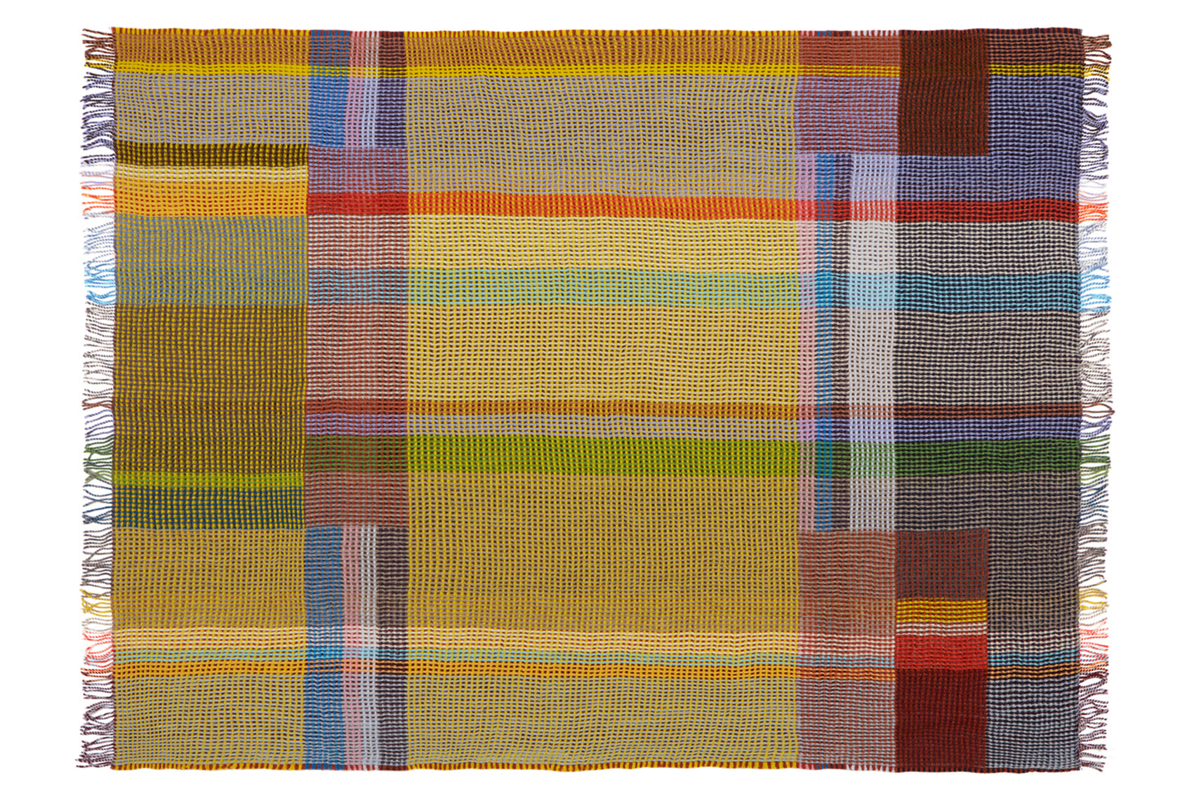 Wallace Sewell’s trademark honeycomb throw is woven from merino lambswool, creating a bold, contemporary, and reversible piece with a bouncy feel.