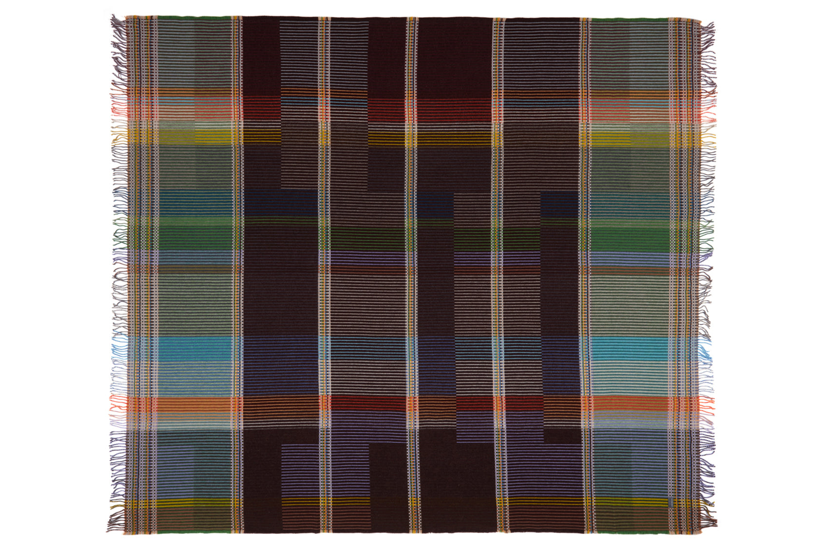 Woven in merino lambswool, our Pinstripe throws combine bold coloured blocks with fine, detailed vertical stripes. This double-sided design also has a contrasting pixelated border and makes a stunning addition to a room.