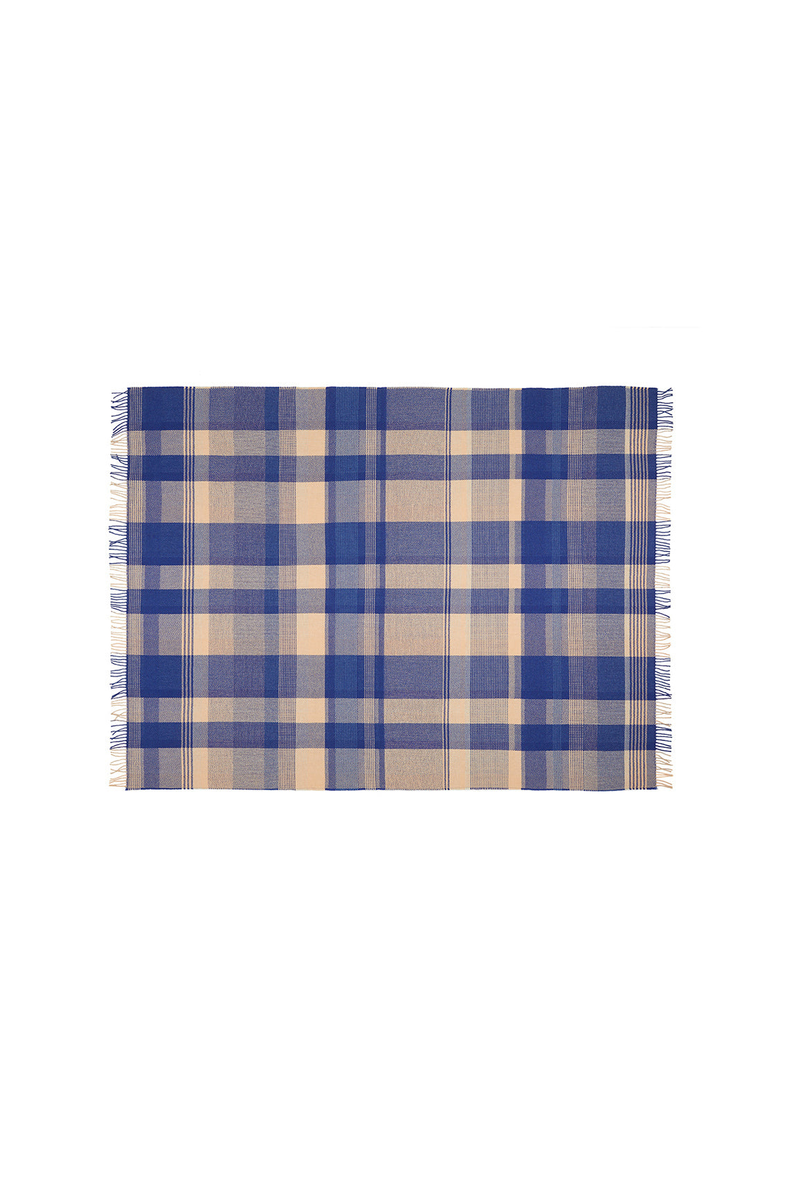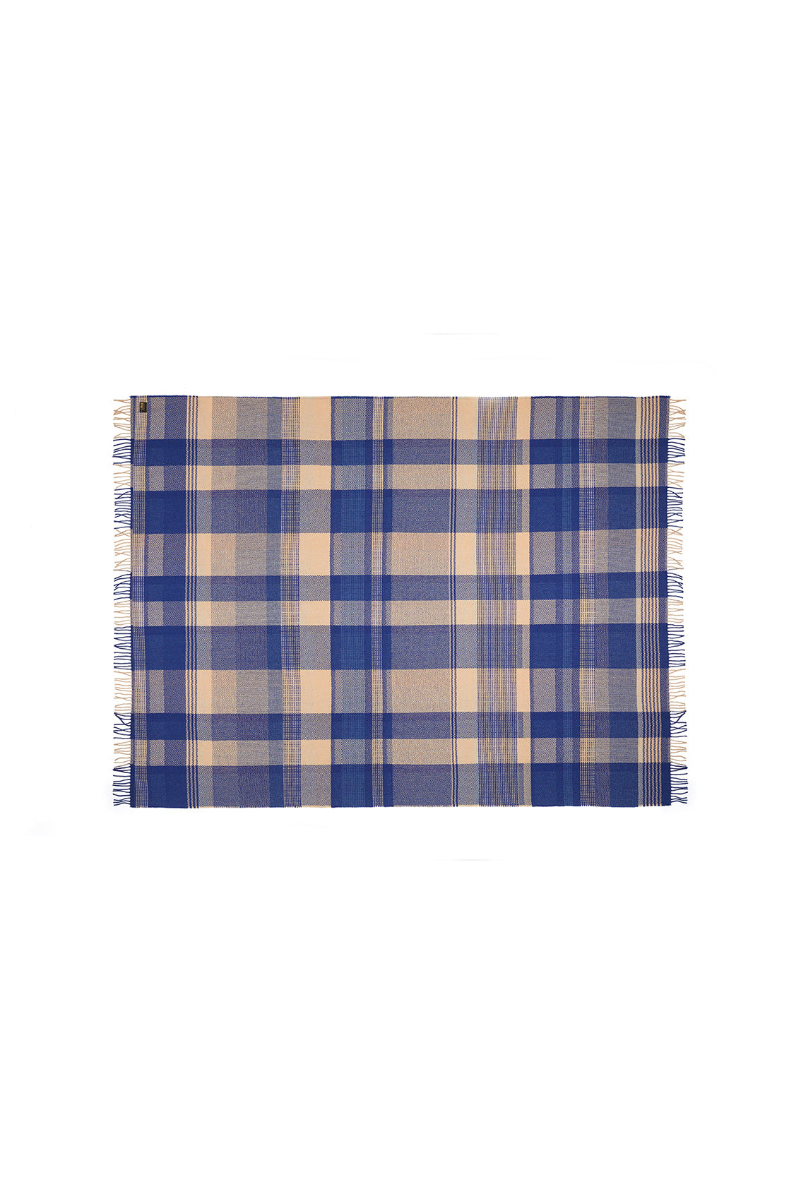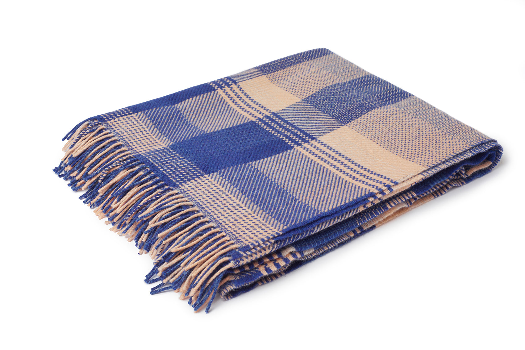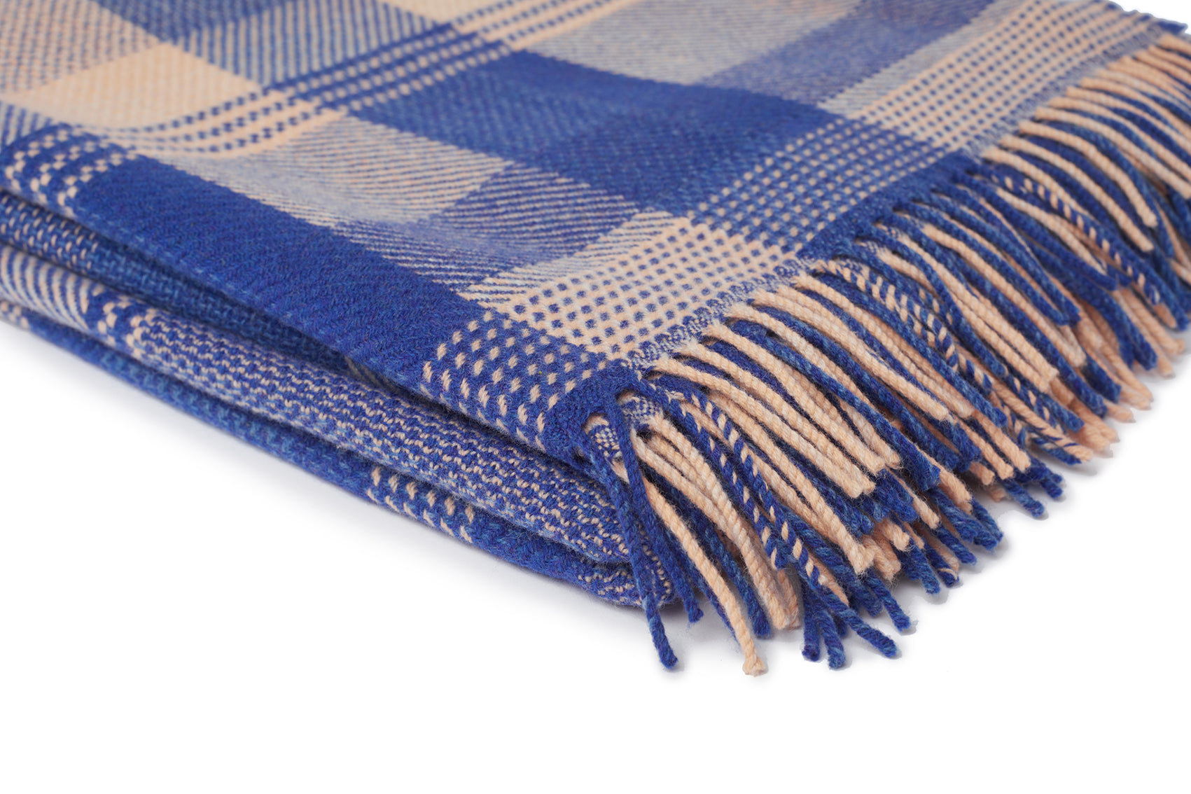 Woven in our classic Merino Lambswool quality, this throw features a textured check that combines navy blue, mid blue and salmon pink tones. A blend of twill, mock leno and hopsack structures adds a tactile surface and subtle movement, offering both warmth and sophistication, a perfect expression of Wallace Sewell’s craftsmanship and love of colour.