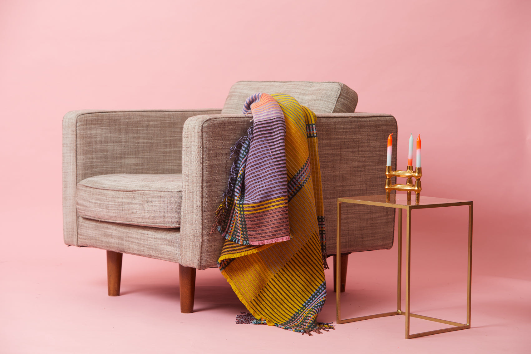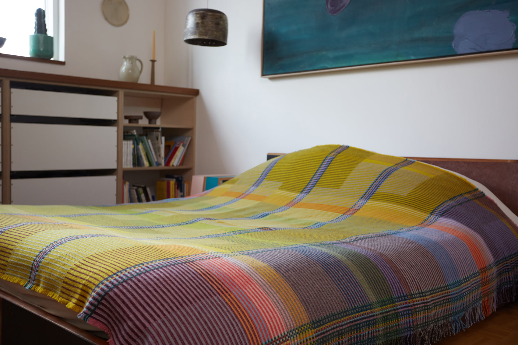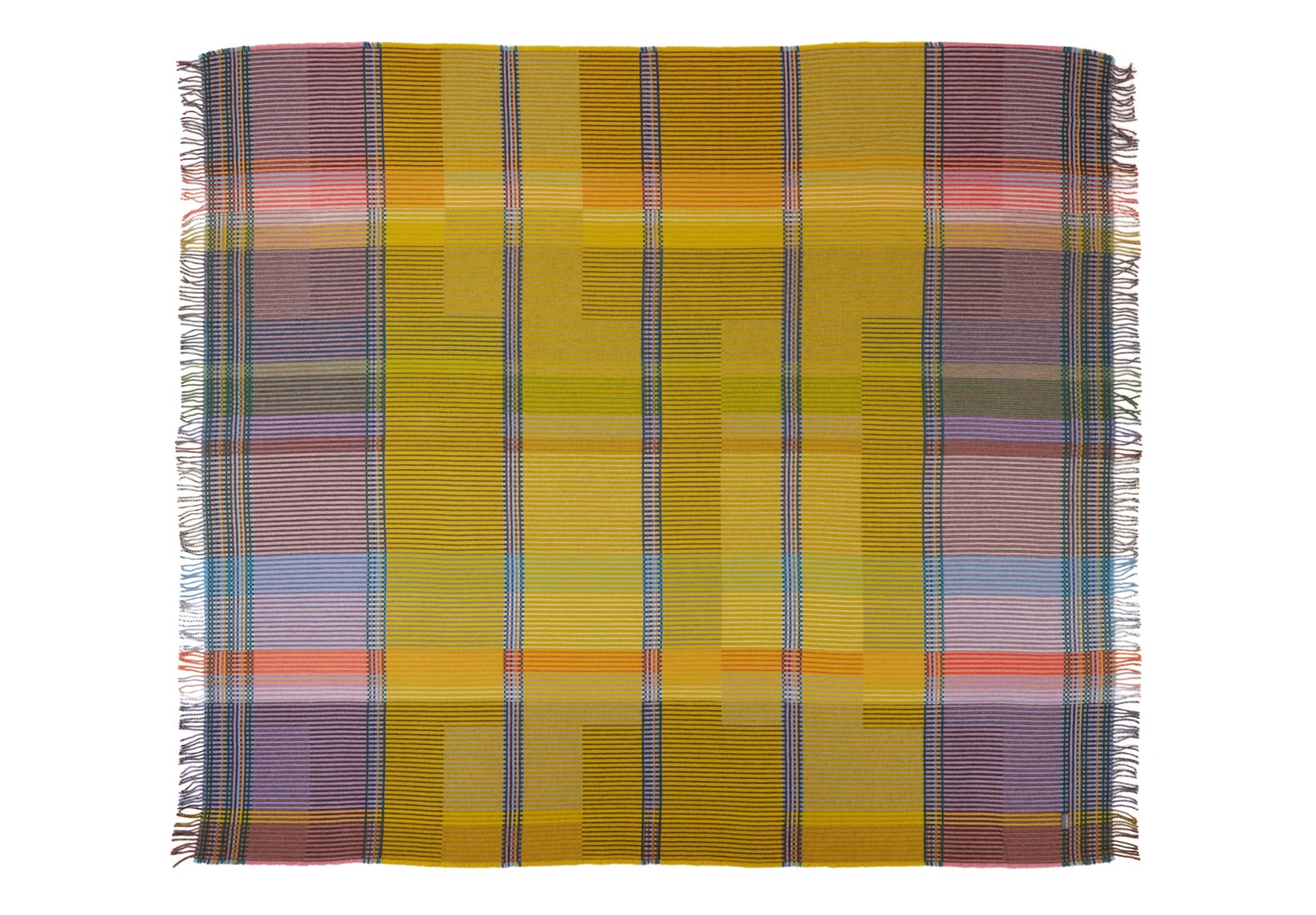 Woven in merino lambswool, our Pinstripe throws combine bold coloured blocks with fine, detailed vertical stripes. This double-sided design also has a contrasting pixelated border and makes a stunning addition to a room.