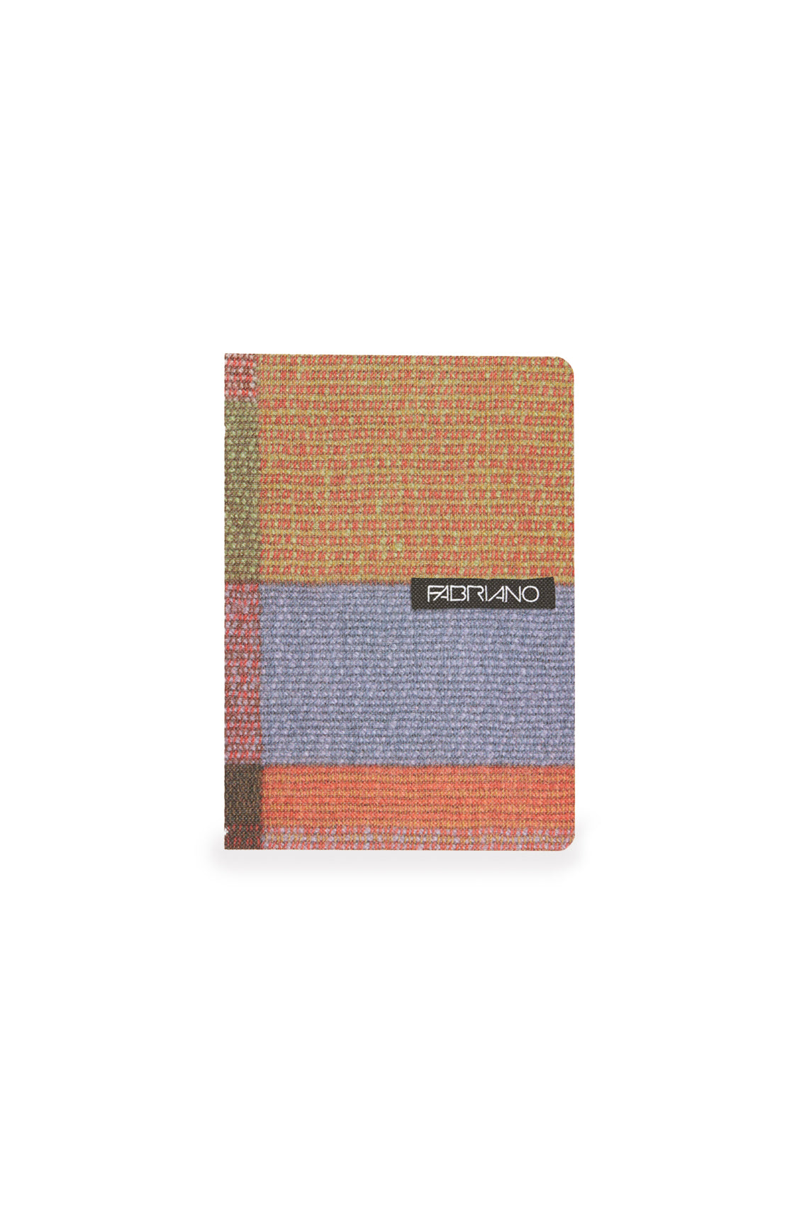 A calm, contemporary notebook, with a cover of woven blocks in sage, soft red, ochre, and blue. This design is perfectly balanced and quietly bold.
