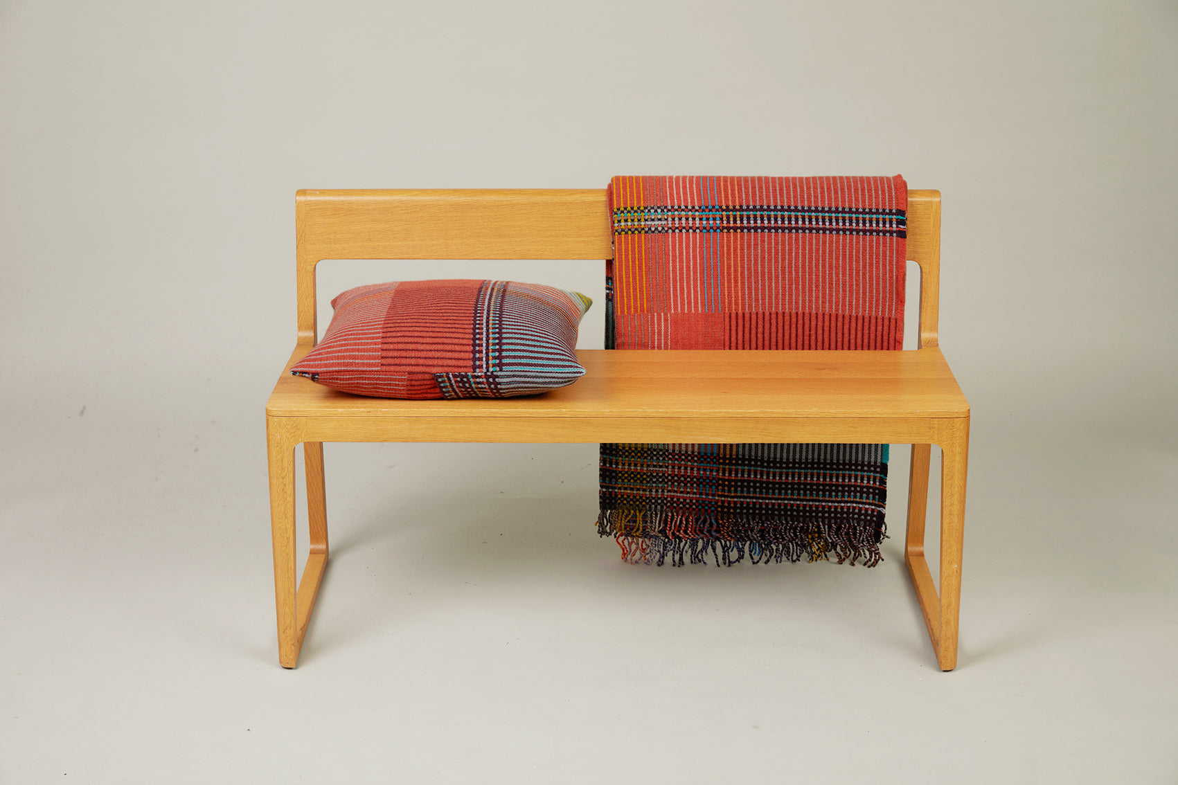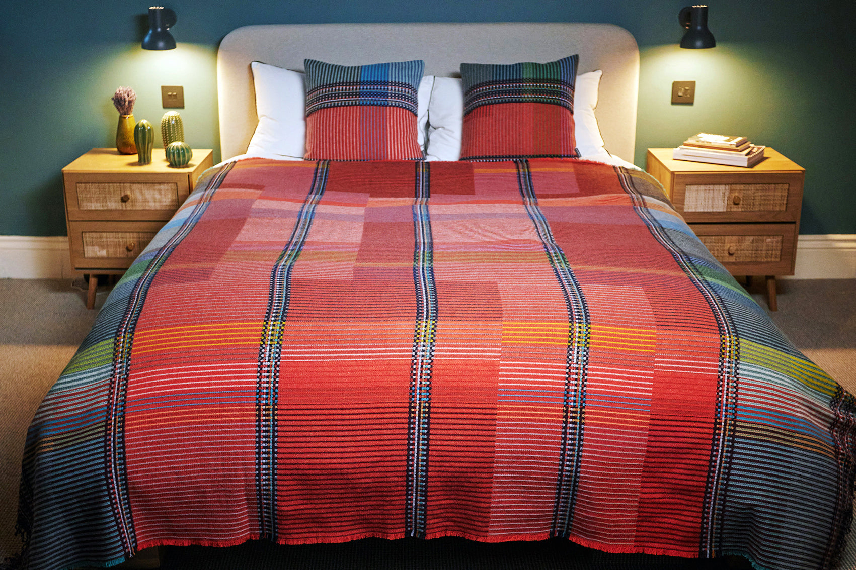 Woven in merino lambswool, our Pinstripe throws combine bold coloured blocks with fine, detailed vertical stripes. This double-sided design also has a contrasting pixelated border and makes a stunning addition to a room.