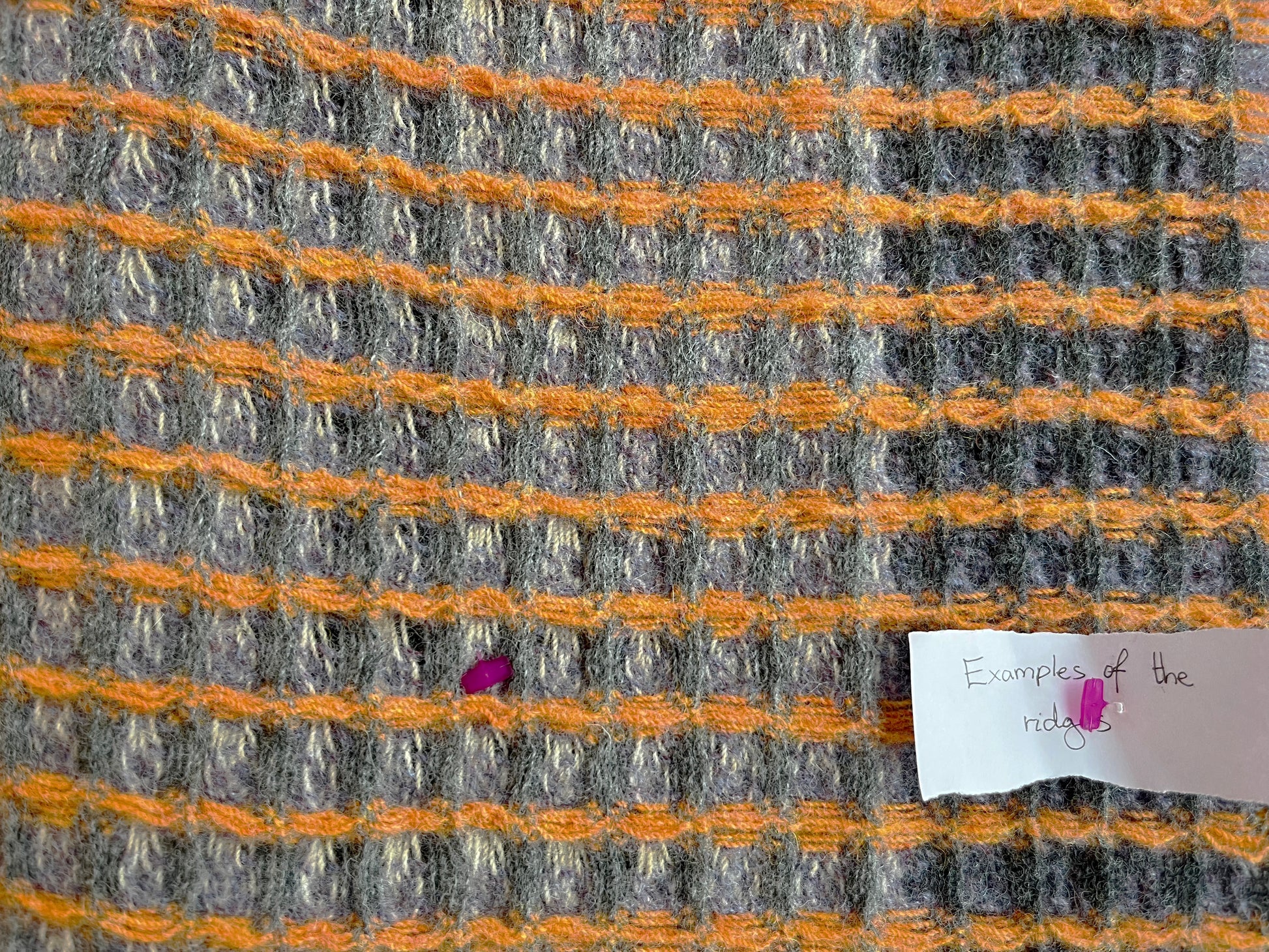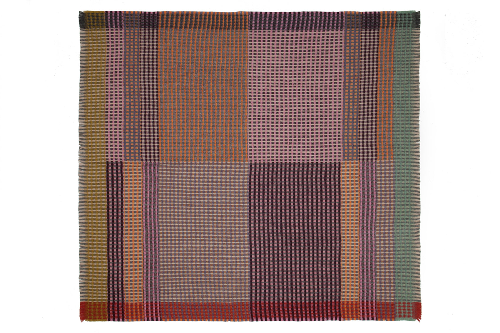 A symphony of fruity tutti orange, nougat pink and grape intermingle in the bold gridded composition. Offset by zesty yellow, mint and rust borders.