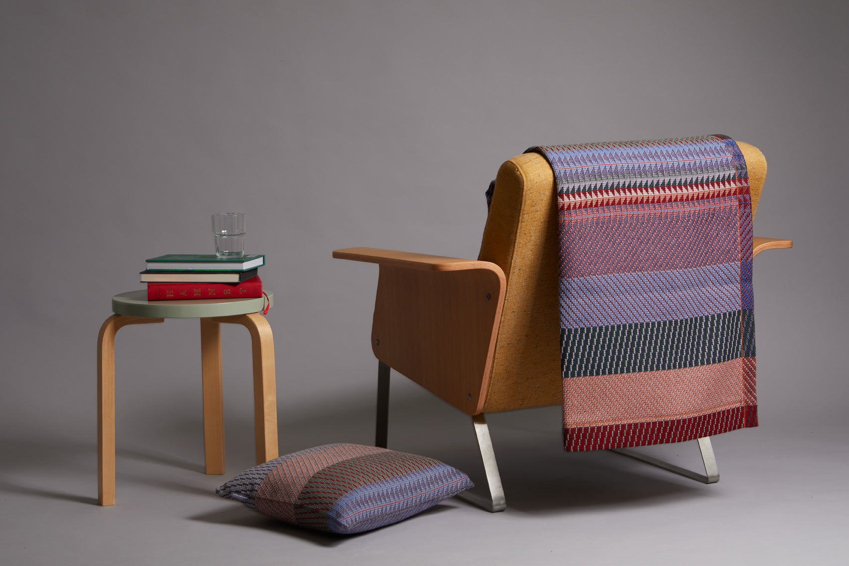 Our Iris Stella throw combines the calming tones of ocean blue with bold, fiery red, blending them to create a striking purple jewelled effect from afar. Accents of forest green and terracotta add richness, perfectly complementing the vibrant core of the design.
