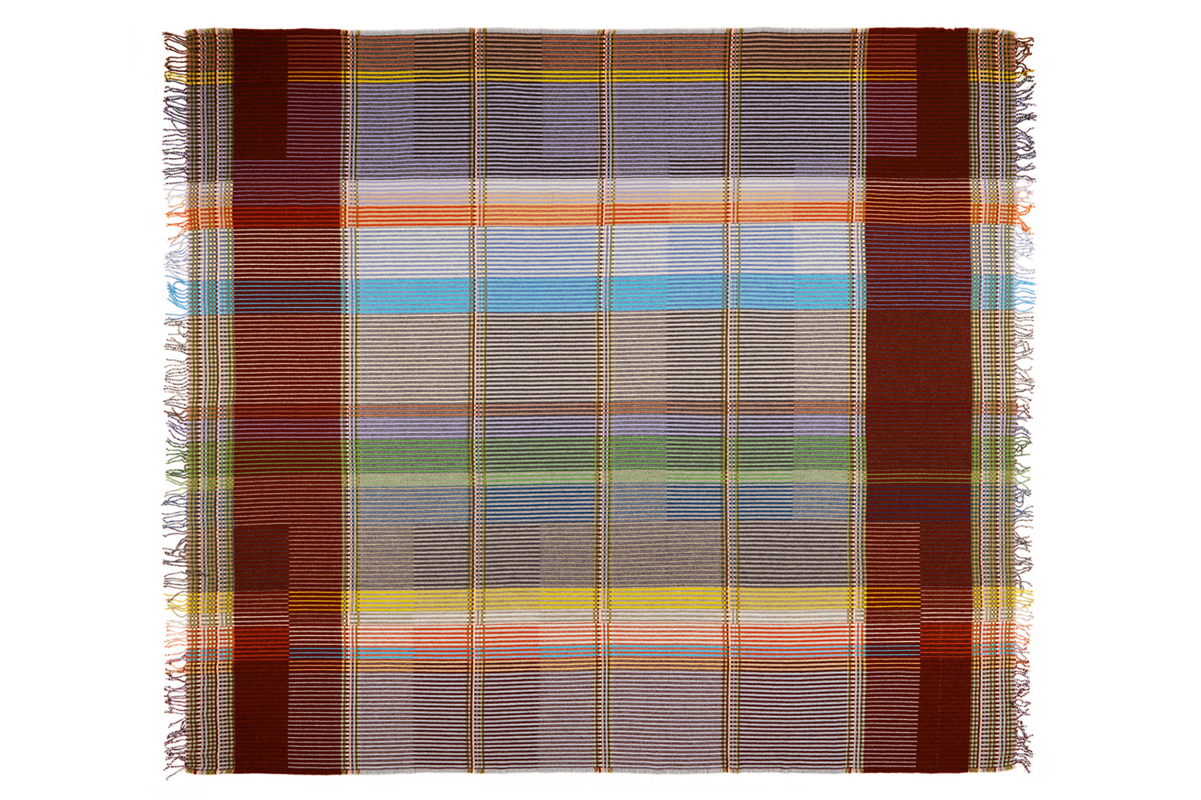 Woven in merino lambswool, our Pinstripe throws combine bold coloured blocks with fine, detailed vertical stripes. This double-sided design also has a contrasting pixelated border and makes a stunning addition to a room.