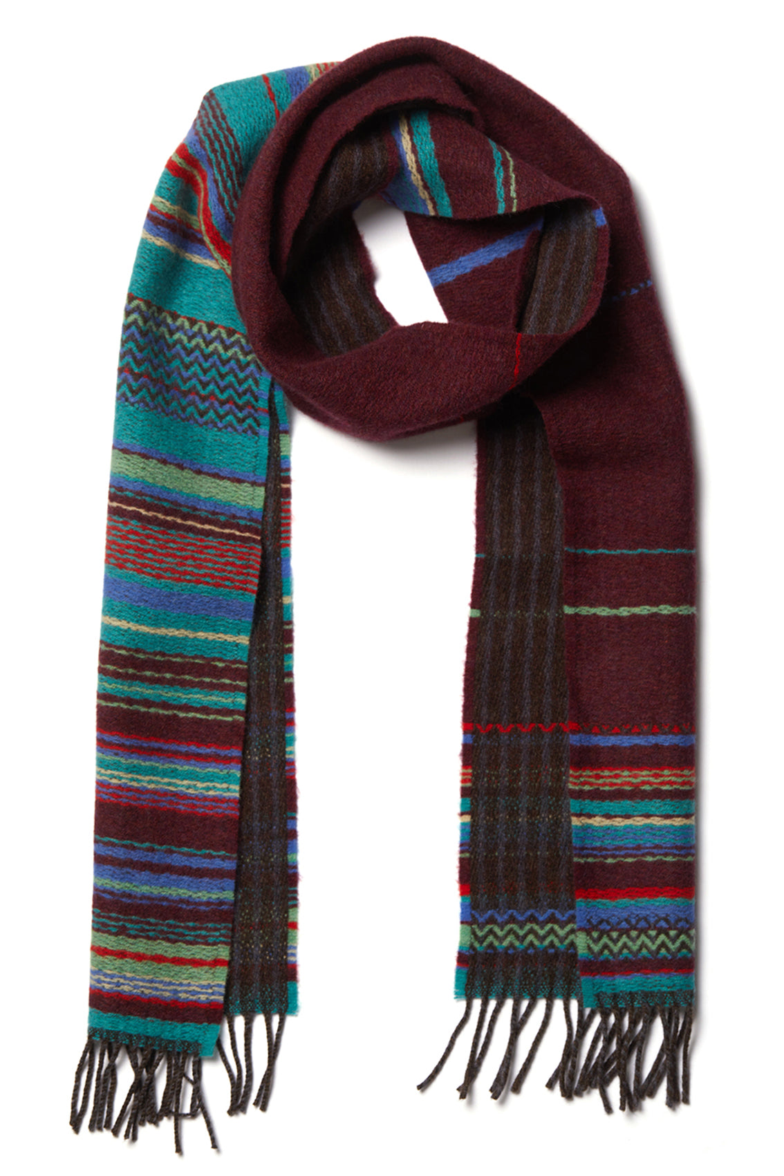 A fun, asymmetric design featuring one side of condensed stripe, which dissipates throughout the middle before gathering again at the other end of the scarf.
