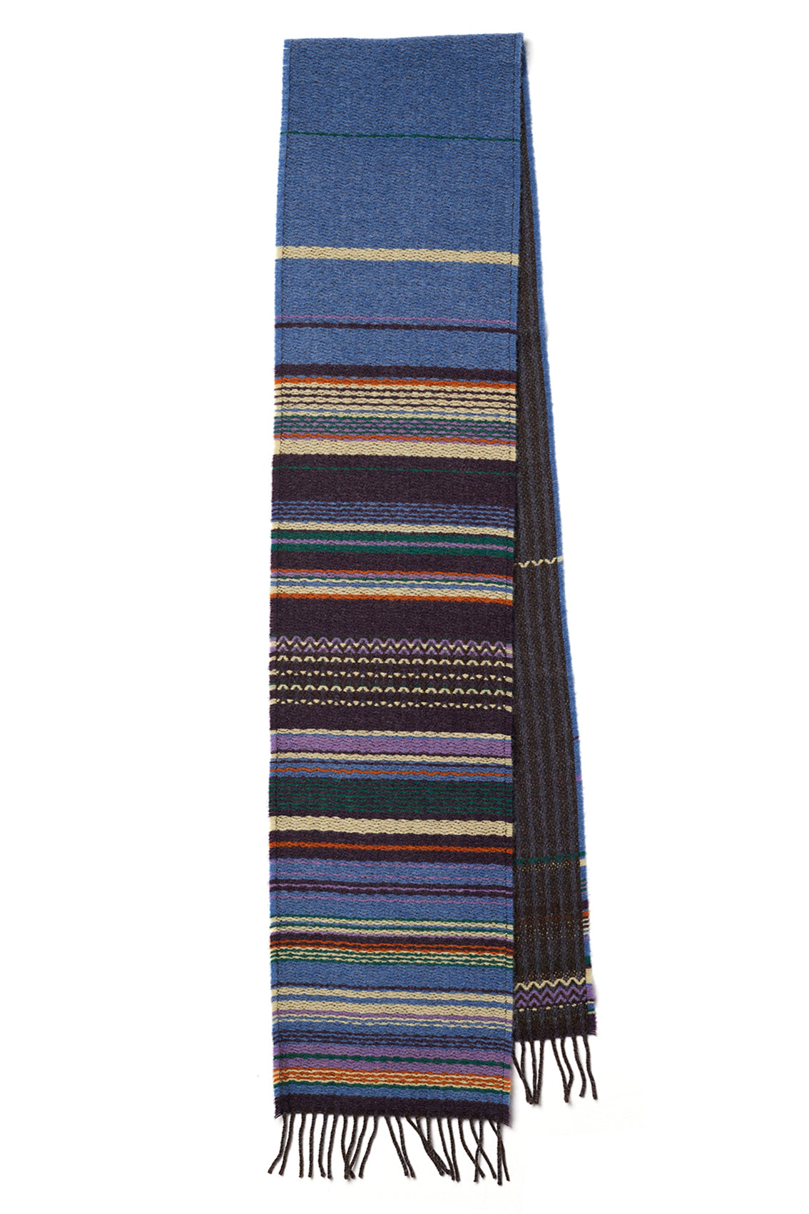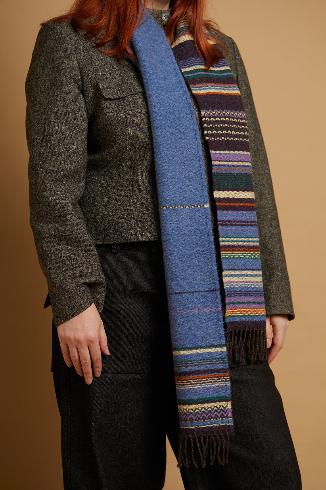 A fun, asymmetric design featuring one side of condensed stripe, which dissipates throughout the middle before gathering again at the other end of the scarf.