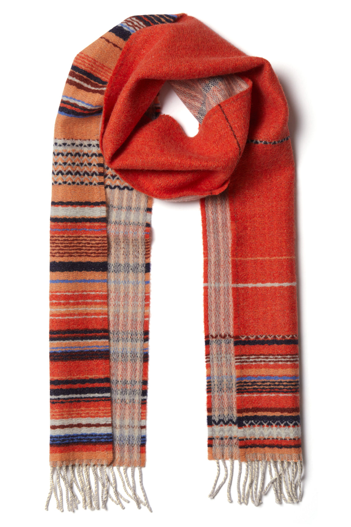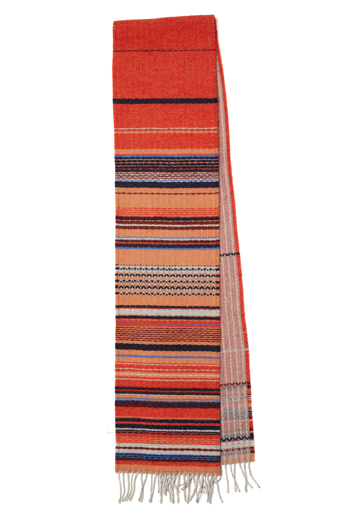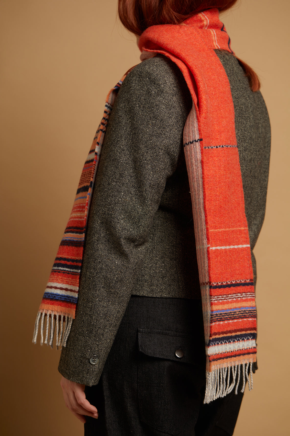 A fun, asymmetric design featuring one side of condensed stripe, which dissipates throughout the middle before gathering again at the other end of the scarf.