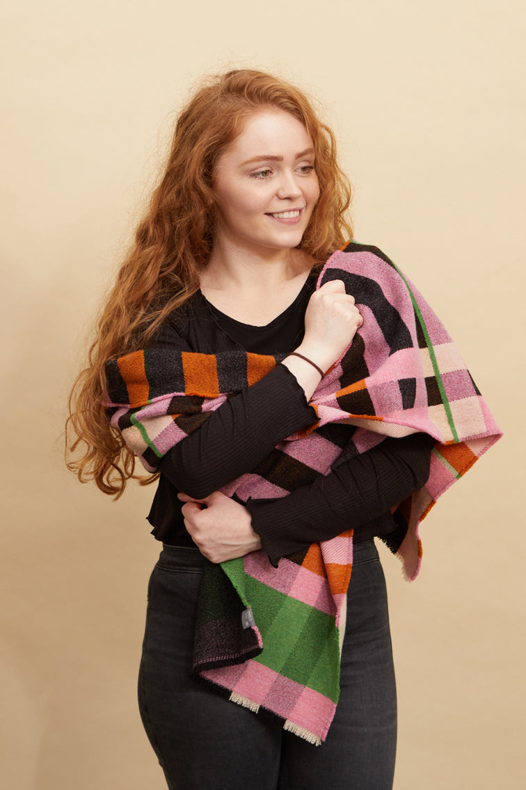 Wallace Sewell's Stölzl wraps were designed as part of the collection for the 2019 Bauhaus centenary celebrations. Emma and Harriet were authorised to create a re-edition of Gunta Stölzl’s original ‘Prellerdecke’ blanket, woven for the dormitories at the Bauhaus Dessau in 1926.