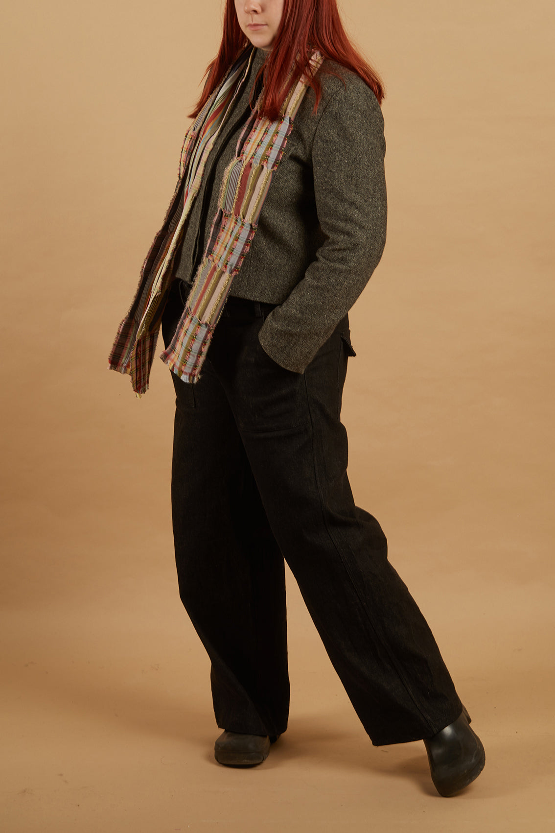 25% wool crepe, from Australia. Spun in India, and dyed in Langholm, Scotland.