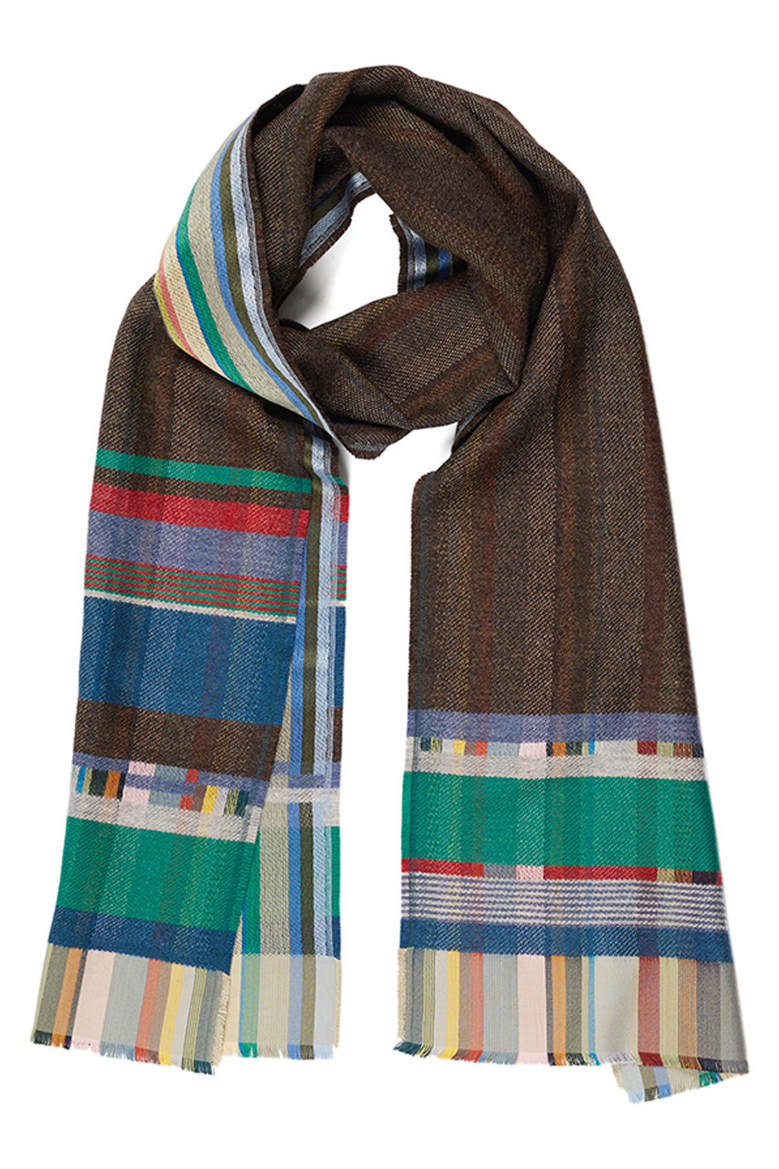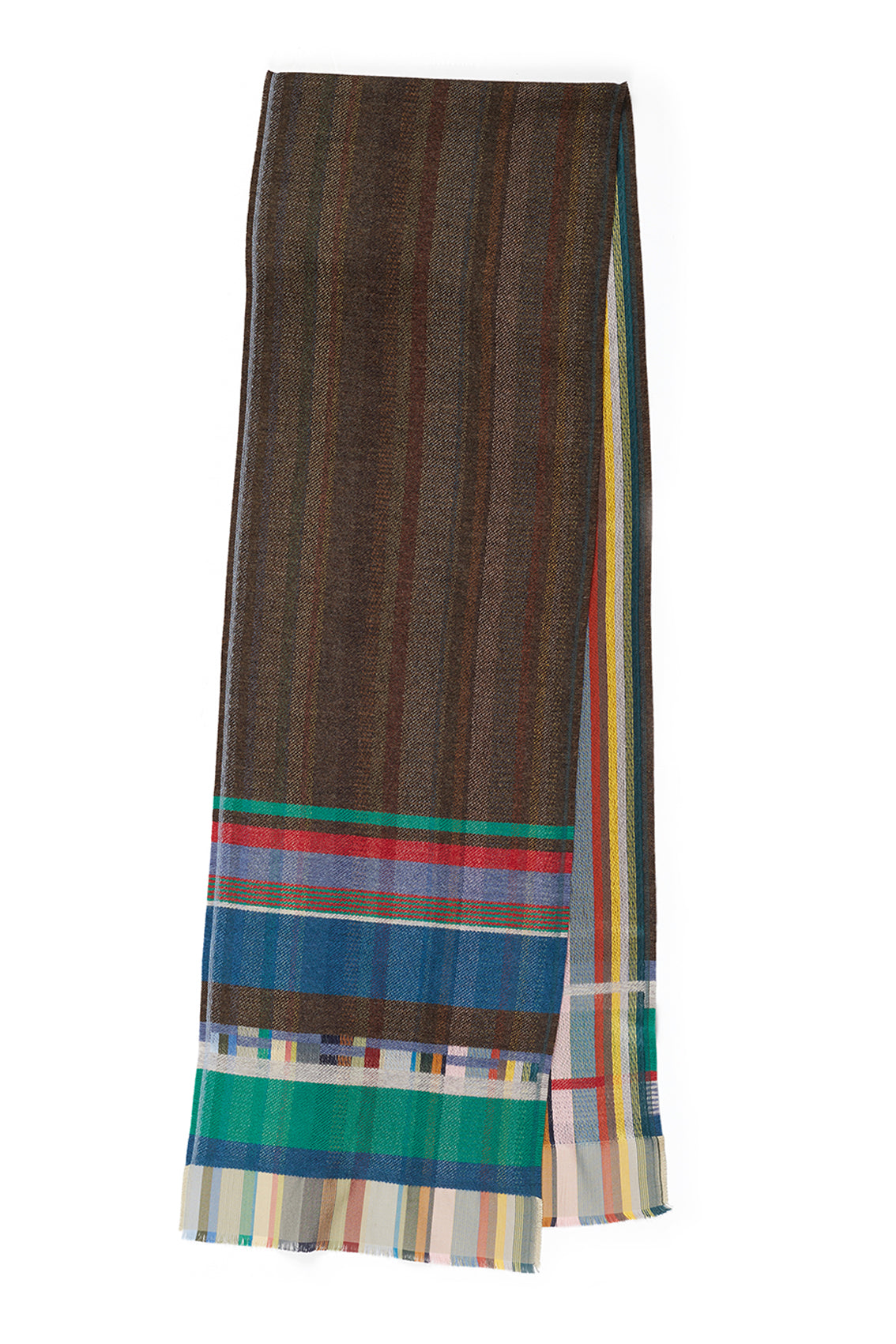 This playful scarf mixes a striped silk warp with a soft lambswool weft for a totally luxurious, but still practical, double-sided scarf.