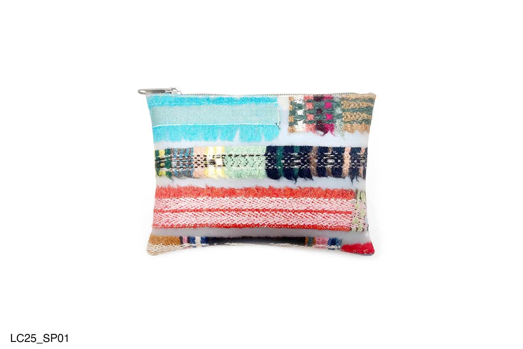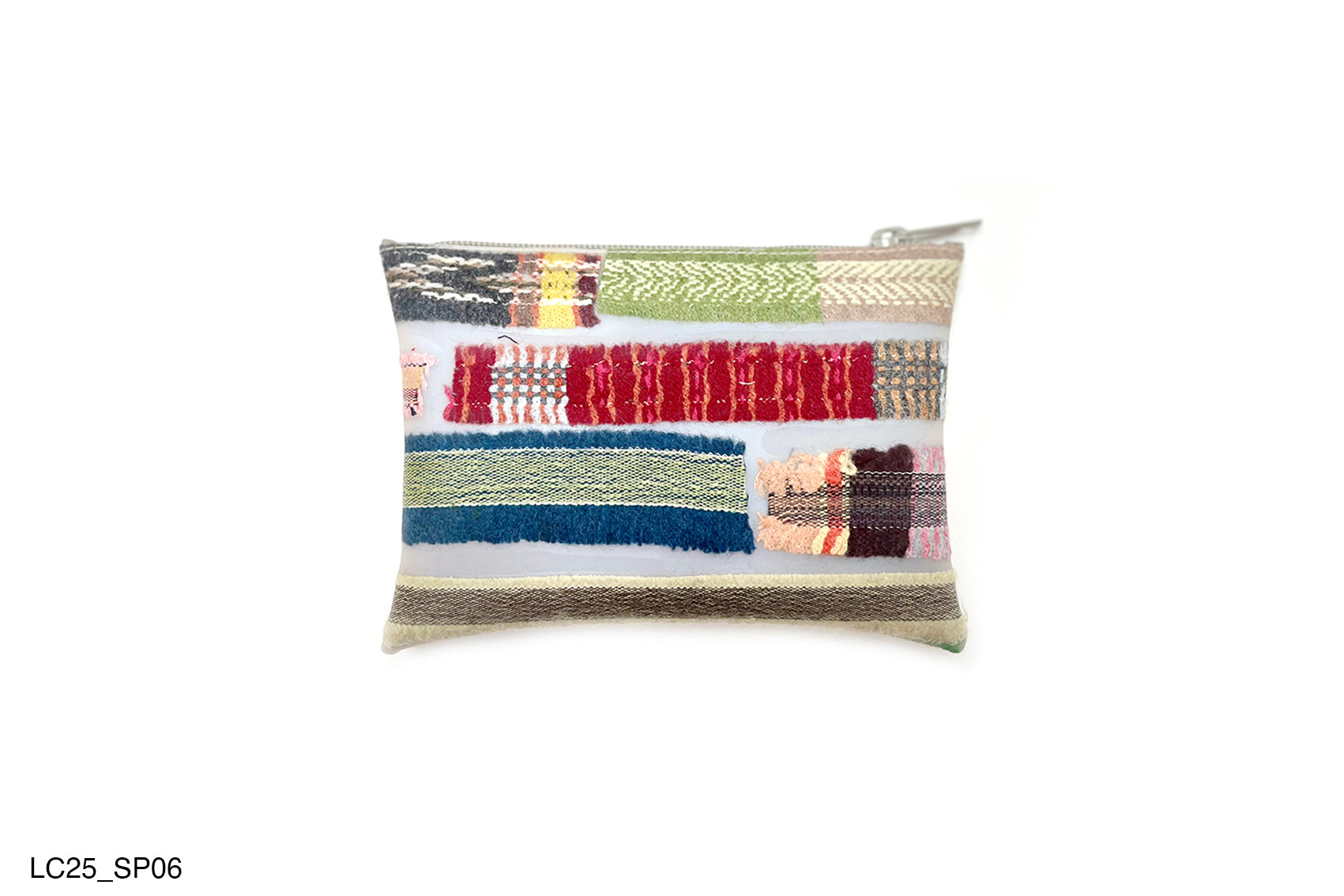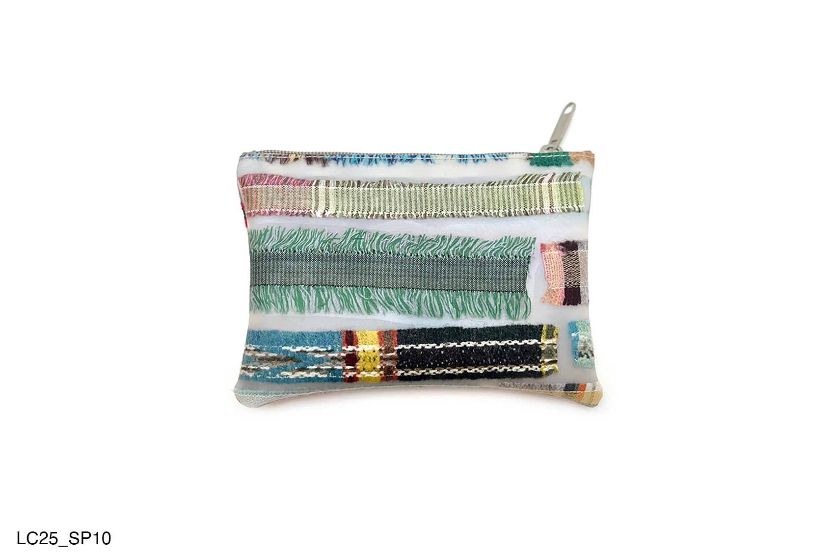 These Small Pockets are part of the Riedizioni collection by Luisa Cevese; they are made out of an innovative and original material that combines textile remnants with polyurethane. Wallace Sewell are excited to collaborate with Luisa, as her designs recycle the woven selvedges from our scarves and throws, to create these beautiful accessories.