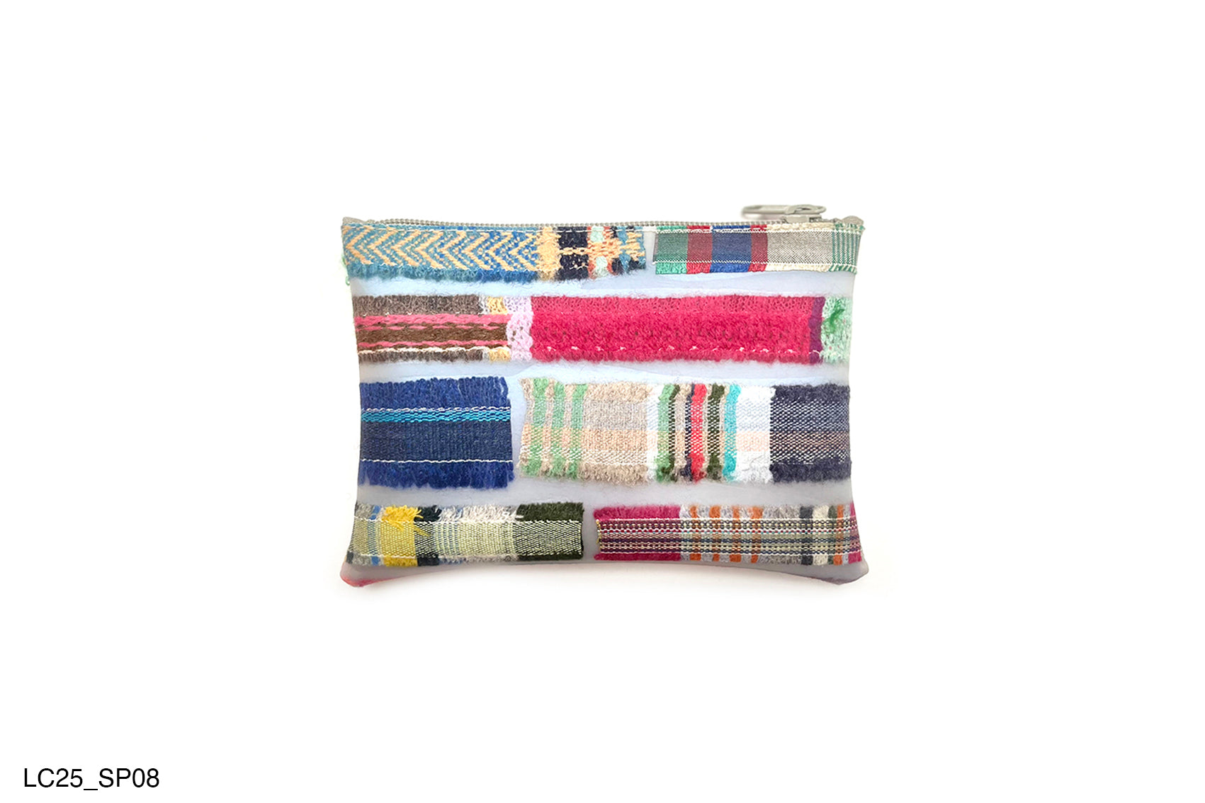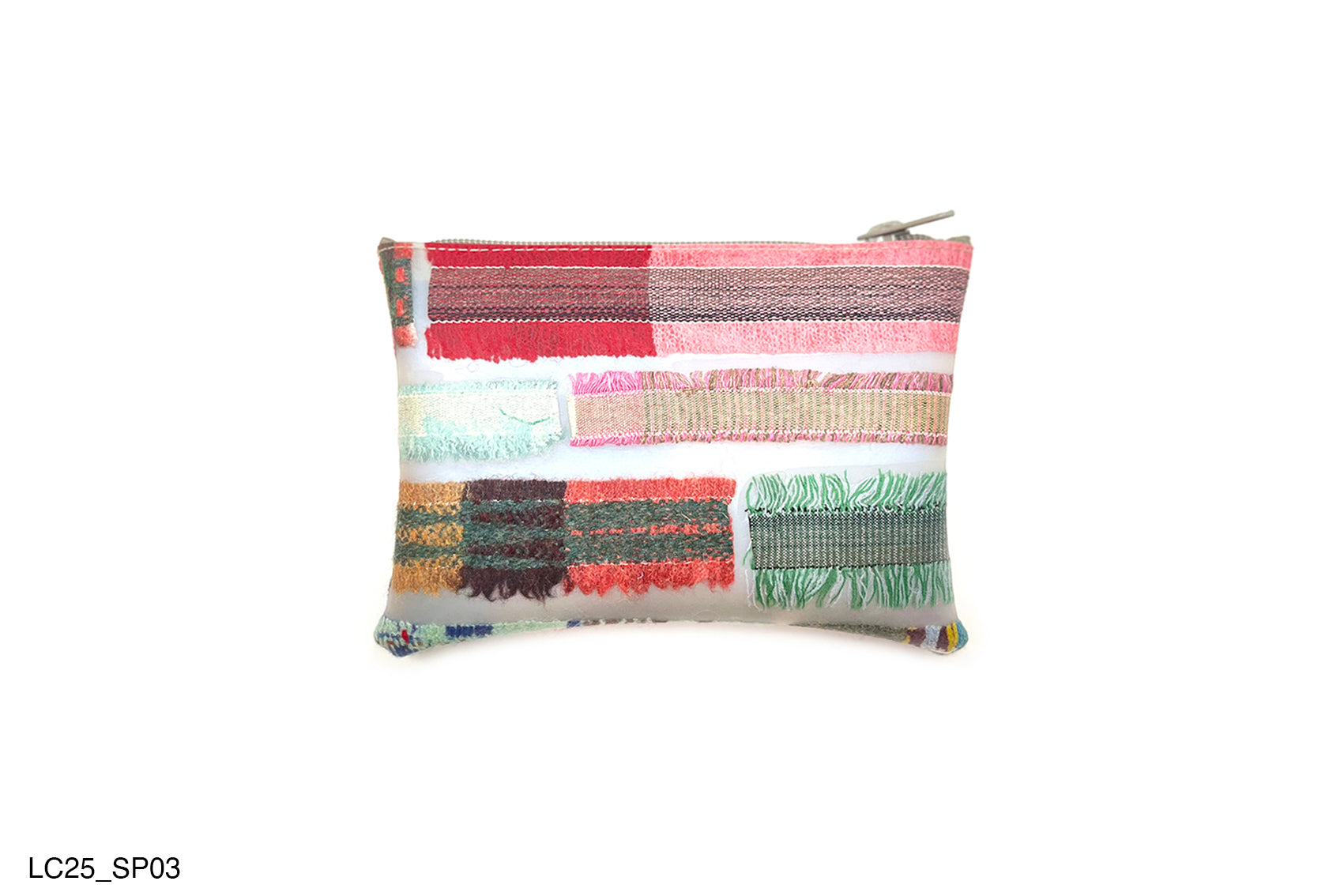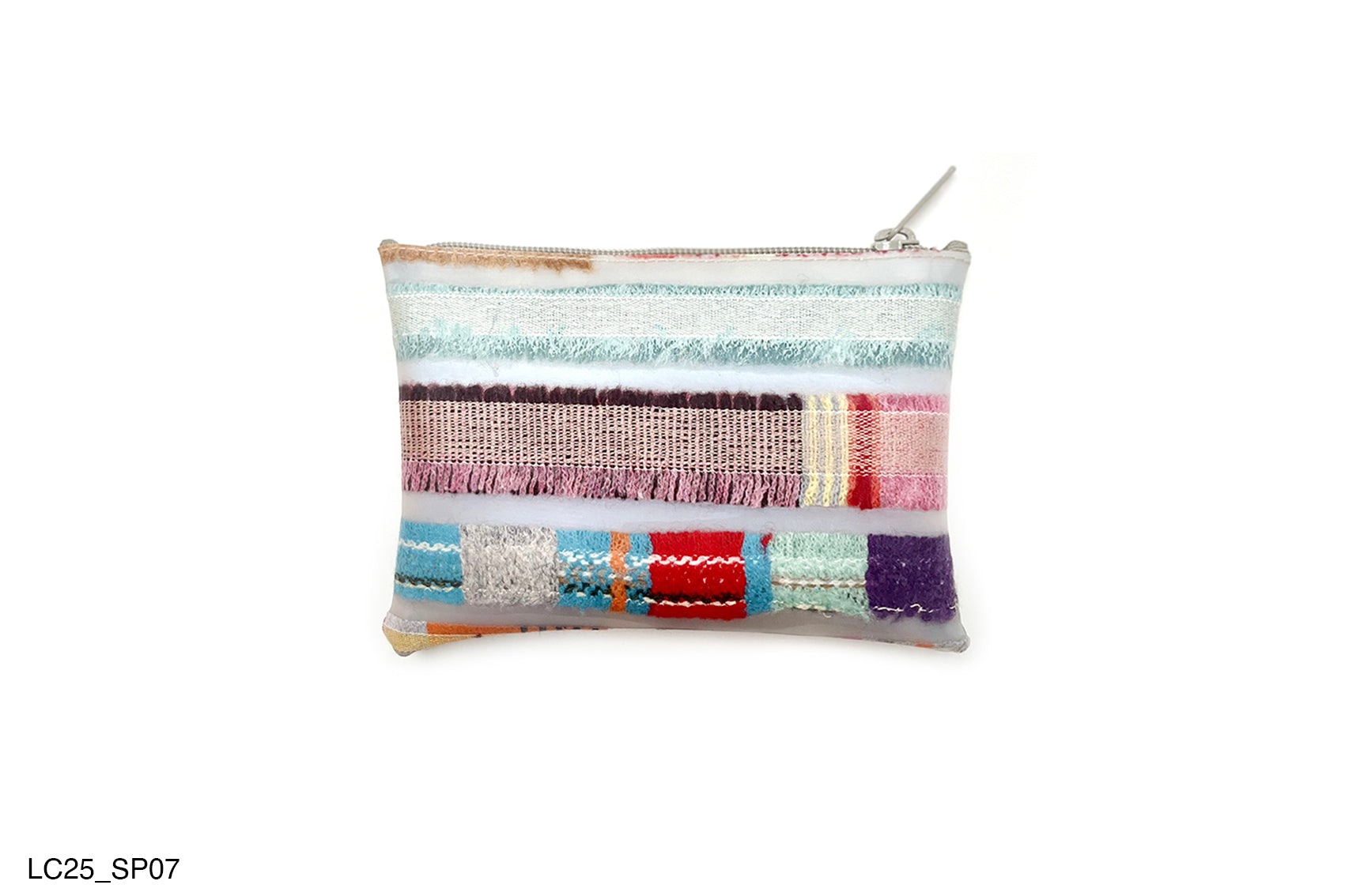 These Small Pockets are part of the Riedizioni collection by Luisa Cevese; they are made out of an innovative and original material that combines textile remnants with polyurethane. Wallace Sewell are excited to collaborate with Luisa, as her designs recycle the woven selvedges from our scarves and throws, to create these beautiful accessories.